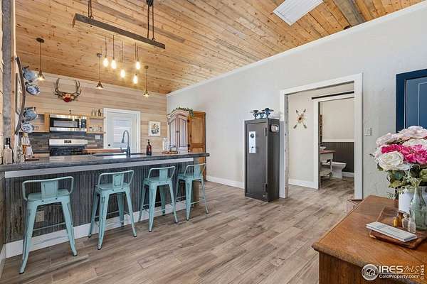 Price Reduced!! If you are looking for country living, look no farther! This stunning 44-acre property is designed for the refined horse lover! Equipeted with a 95x40 center aisle horse barn with 12 horse stalls and a tack/feed room. Large hay door, horse runs, and large round pen. The stunning ranch style home offers an open concept style with 3 bedrooms and 2 bathrooms and over the top finishes! Beautiful tile floor with radiant in floor heating throughout the home. The Kitchen includes costume cabinets, concrete poured counter tops, and stainless-steel appliances including a gas range stove top. The primary bedroom has a large walk-in closet and plenty of space. The primary bathroom includes a clawfoot bathtub and a walk-in shower. The home is equipped with Fiber Optic internet, so no need to worry about missing any zoom calls! Step out onto the deck to watch many sunsets. Don't forget to bring your ATV's and dirt bikes! There is plenty of room to cruise around on! 600 ft deep well and Poudre Valley RE power. 1 YEAR HOME WARRANTY INCLUDED!!!!