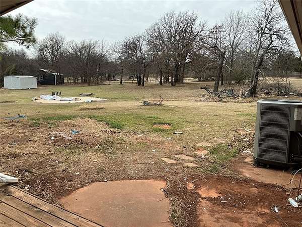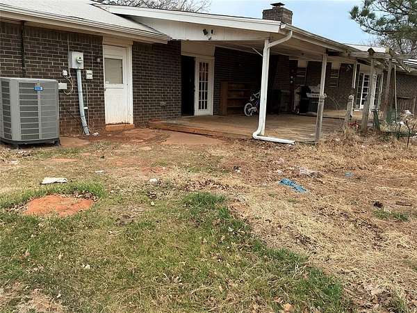 Country charm on nearly 3 acres with Endless Potential. This 4-bedroom, 2-bath brick home offers a spacious living room featuring built-in shelving and a wood-burning fireplace that creates a warm focal point. The kitchen provides generous cabinet storage, ample counter space, and a dining area that connects easily to the main living space. The primary bedroom features a walk-in closet and direct access to the backyard, while the additional bedrooms offer flexibility for family, guests, or a home office. Enjoy peaceful outdoor living from the large covered patio overlooking the open acreage with mature trees and plenty of room for a shop, animals or future improvements. Recent updates include a well water system replaced approximately two years ago, a new central heat/air pump installed in 2023, and two new toilets along with several updated faucets within the past year. The roof and siding were replaced in 2017 and include transferable warranties. This home offers solid bones and a functional layout, making it a great opportunity for buyers looking to add their own updates and personal touches. Property is being sold AS-IS With quick access to I-40, I-240, Tinker Air Force Base, downtown Oklahoma City, Midwest City, and Choctaw, this home offers both convenience and opportunity. Schedule your showing today!