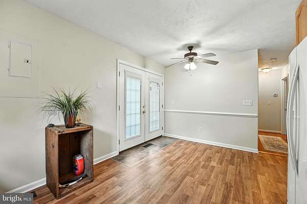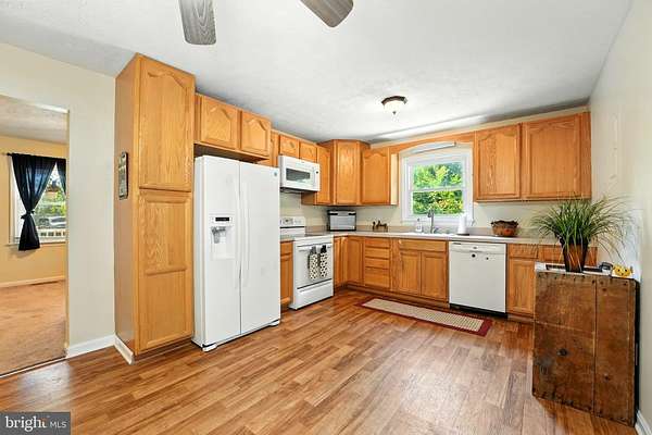 - Carpet, Ceiling Fan(s), Combination Kitchen/Dining, Country Kitchen, Eat-In Kitchen, Entry Level Bedroom, Pantry, Table Space Kitchen, Traditional Floor Plan, Window Treatments, Wood Floors