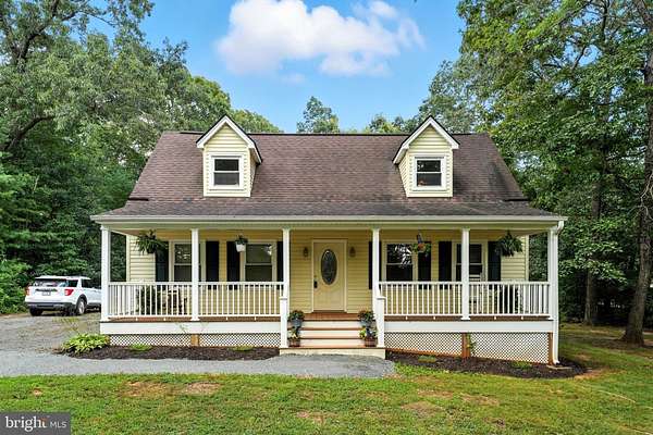 Charming Cape Cod on 2 Acres of Peaceful Privacy! Tucked away in quiet solitude yet conveniently located with easy access to Rt 17 and I-95, this beautiful Cape Cod offers the best of both worlds. Featuring 4 spacious bedrooms and 2 full baths, this home has been freshly painted throughout. Enjoy hardwood floors on the main level and cozy carpeting upstairs. Relax on the welcoming front porch or entertain on the large back deck just off the kitchen. Each bedroom offers generous space and oversized closets. The expansive yard is ideal for outdoor activities, gardening, or simply enjoying the surrounding nature and wildlife. A true retreat with the comfort of convenience!