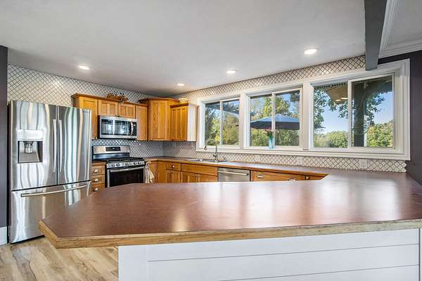 Exceptionable Ross Township property now available. Glorious views overlooking well over10 acres of private countryside seclusion. Surrounded by quaint meadows, woodland and farmland, this location has become the regional choice location for estate class residential investment. Approaching nearly 3,000 square feet of living space, including very large and open spans of unbroken main floor kitchen, dining and living space. Lower levels lead to spacious family and secondary living quarters with striking concave steps that lead to a very large workshop/hobby/studio level with its windows & walk-out doors this space is flooded with ample natural light. 4 Bedrooms - 3.5 Bathrooms ready for your enjoyment. Significant entire replacements less then one year old include the roof and heating system. Add a mighty bonus of the additional barn/auxiliary building and lovely concrete drive that services it, one truly feels the value of its price.