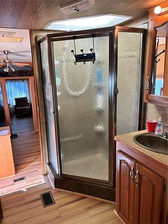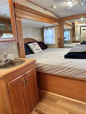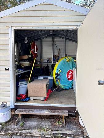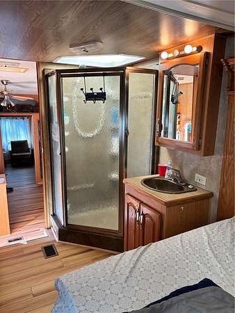 Awesome 2006 43' Cardinal Forest River on corner lot in Salt Springs Resort! New laminate flooring throughout (2024). Roof resealed 2023. Front A/C 2024, back A/C 2023. Living room can be closed off for privacy and also has an electric fireplace. Tons of storage! Includes golf cart, jet ski, smoker, and gas fire pit. New (2024) hurricane proof 10x10 aluminum shed with washer/dryer hookups. The freezer and refrigerator in the shed are included. There are 2 outside water spigots for washing off jet ski, golf cart, etc. Amenities include community boat ramp to Little Lake Kerr w/ dock, 2 pools, hot tub, dog park, playground, shuffleboard, horseshoes, tennis/pickleball courts, lodge, game room and more! Close to Salt Springs Recreation Area. Great opportunity to live here, use as a weekend retreat or as an investment property! Cash only.