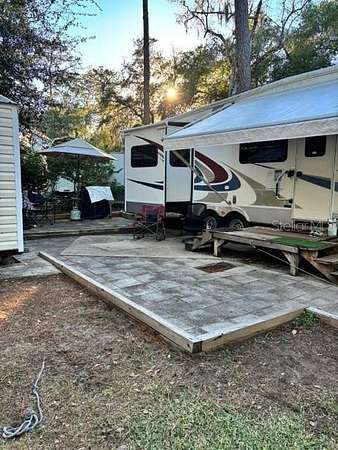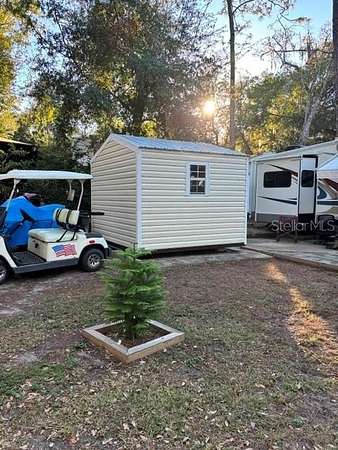 Awesome 2006 43' Cardinal Forest River on corner lot in Salt Springs Resort! New laminate flooring throughout (2024). Roof resealed 2023. Front A/C 2024, back A/C 2023. Living room can be closed off for privacy and also has an electric fireplace. Tons of storage! Includes golf cart and jet ski. New (2024) hurricane proof 10x10 aluminum shed with washer/dryer hookups. The freezer and refrigerator in the shed are included. There are 2 outside water spigots for washing off jet ski, golf cart, etc. Amenities include community boat ramp to Little Lake Kerr w/ dock, 2 pools, hot tub, dog park, playground, shuffleboard, horseshoes, tennis/pickleball courts, lodge, game room and more! Close to Salt Springs Recreation Area. Great opportunity to live here, use as a weekend retreat or as an investment property! Cash only.