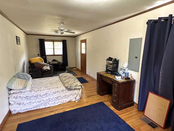 Est $1,701/moCountry estate with lots of potential. This 19+/-ac tract includes a 1716 sq ft house with basement, detached garage/workshop, a 14x48ft mobile home, portable carports, storage buildings, and 4 barns. The land offers over 2500ft of frontage on 2 roads, a small pond, a spring, level to rolling terrain, open pastures, and woods.