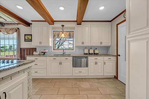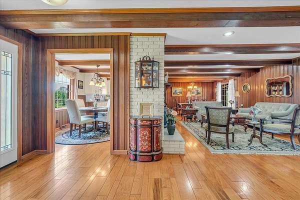 Set in a beautiful countryside setting in Rock Island, this 3 bedroom, 3 bath home offers the space, functionality, and flexibility that’s getting hard to find. Inside, the home is full of character and warmth, featuring exposed wood beams, rich wood flooring, and a spacious living area centered around a brick fireplace. The layout flows naturally into the kitchen and dining area, where granite countertops, updated finishes, and natural light create a comfortable and inviting space for everyday living. A dedicated office or flex room adds even more versatility for work-from-home or hobby use.