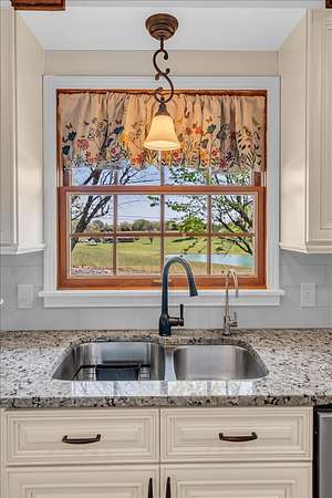 Enjoy peaceful views of a scenic pond just across the road, adding to the setting without the upkeep.