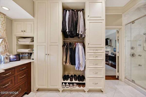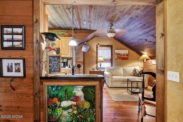 - Apartment, Bookcases, Cedar Closet(s), Double Vanity, Entrance Foyer, Fireplace, Gas Logs, High Ceilings 10' ft Main, His and Hers Closets, Pantry, Permanent Attic Stairs, Wet Bar, Workshop Area