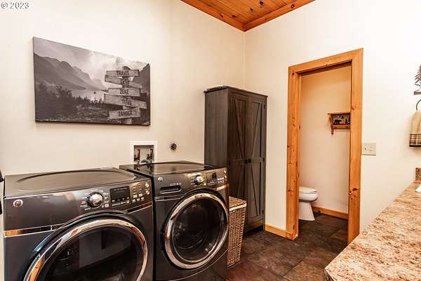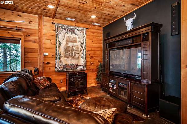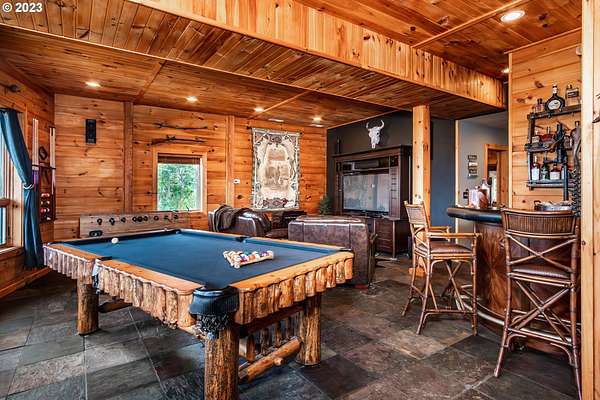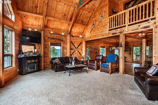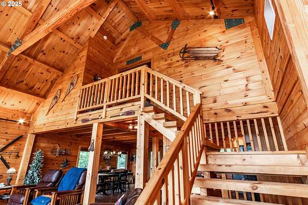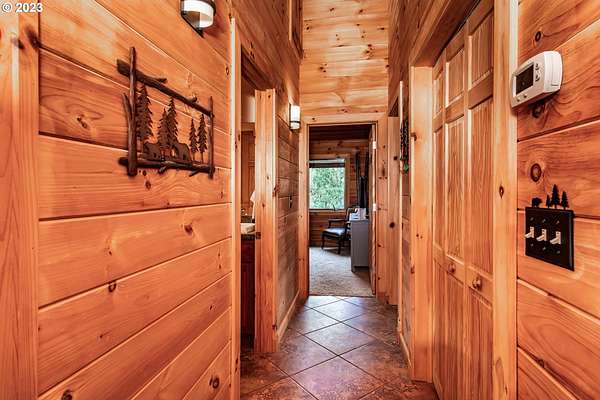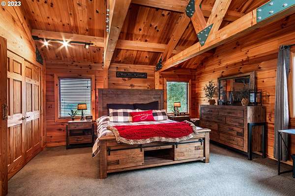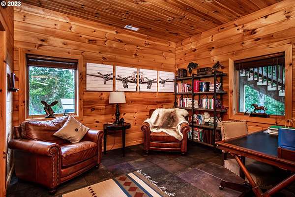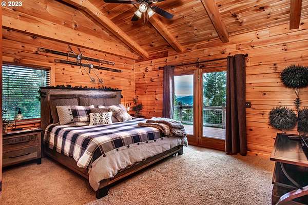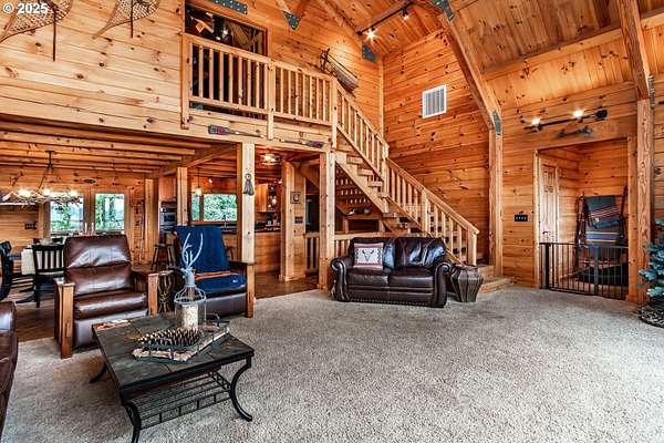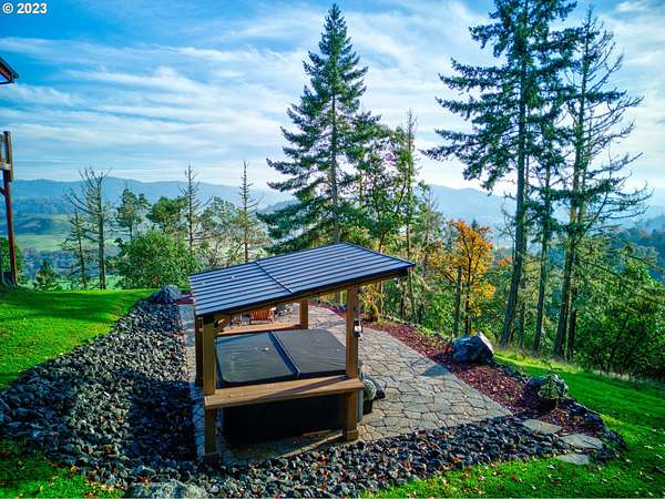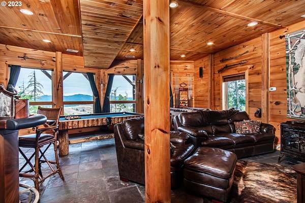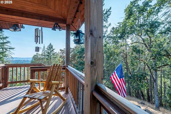 Rich timber finishes enhance this exceptional estate, setting it apart from typical log cabins. Experience unparalleled luxury and privacy at 1435 Wilbur Rd, Roseburg, OR-an exquisite luxury log home nestled on 80 pristine acres of serene woodland. This masterfully crafted residence blends rustic elegance with sophisticated design, featuring soaring 28-foot ceilings, exposed beams, and expansive Anderson windows that flood the space with natural light and showcase breathtaking panoramic views from nearly every room. The gourmet kitchen boasts top-of-the-line stainless steel appliances, perfect for culinary excellence. Two lavish primary suites offer ultimate comfort: the main suite on the third level includes a luxurious soaker tub and tile shower, while the second suite on the second level opens to an expansive deck ideal for stargazing in complete privacy. The bottom level impresses with elegant slate tile flooring, a refined family room with a pellet stove, and premium surround sound for an immersive experience. Outside, enjoy abundant wildlife, premier hunting grounds, timber resources, ample RV parking, an extra-deep two-car garage, and a luxurious hot tub beneath a new pergola. With Farm Forest tax exemption, low property taxes, and reliable Umpqua Basin water, this estate offers exclusivity, natural beauty, and refined living-perfect for the discerning buyer seeking a private sanctuary with unmatched elegance. Your extraordinary lifestyle begins here.