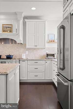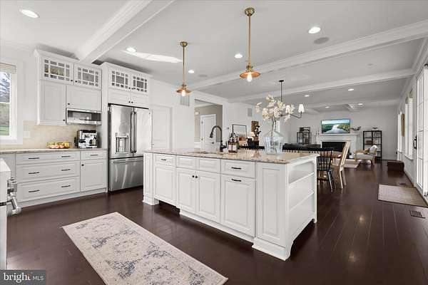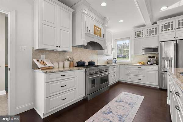 Tucked away on a meticulously manicured two-acre lot in a private enclave off Cuba Road, this exquisite residence offers a blend of privacy, sophistication, and thoughtfully curated design. Featuring four bedrooms with four and a half bathrooms, the home is filled with natural light, complemented by a refined neutral palette, high-end finishes, and exceptional attention to detail throughout. Step inside the two-story foyer where rich hardwood floors greet you, enhanced by elegant wainscoting and crown molding that add a polished touch. Sliding pocket doors open to a main level office with a walk-in closet, creating a quiet and versatile workspace. Designed for both everyday living and entertaining, the open-concept main level showcases designer lighting, tall beamed ceilings with integrated speakers, and automatic window shades that adjust with the sunrise and sunset. The gourmet kitchen is beautifully appointed with granite countertops, a tile backsplash, center island with seating, walk-in pantry, and tall soft-close cabinetry. High-end stainless steel appliances include a Jenn-Air six-burner range with griddle and double ovens, a built-in range hood, and a recently replaced Miele dishwasher. Just beyond, the mudroom serves as a convenient drop zone from the side entrance, offering ample storage, while the separate laundry room features a brand new stacked washer and dryer with a sink. The spacious dining room with sliding glass doors outside provides an ideal setting for gatherings, while the cozy family room is anchored by a wood-burning fireplace. A half bathroom completes the main level. Upstairs, the primary suite serves as a true retreat with a gas fireplace, walk-in closet, and a luxurious bathroom boasting a dual-sink vanity, freestanding clawfoot tub, and frameless walk-in shower. An expansive loft offers flexible space for a lounge, office, or additional living area. A second bedroom suite includes its own walk-in closet and private bathroom, while the third and fourth bedrooms share a well-appointed hall bathroom. Downstairs, the fully finished lower level features a spacious recreation room with plenty of room for a variety of activities, along with a walk-in closet and a fourth full bathroom. A utility room provides additional storage space. Outdoor living is equally impressive with a large covered patio equipped with outdoor speakers. The fully fenced, level backyard has ample space for outdoor enjoyment. Additional highlights include a two-car garage with two 240-volt outlets for EV chargers, dual-zoned heating and cooling systems, a whole-house generator, indoor sprinkler system, water filtration system with a neutralizer and ultraviolet light, and a zoned speaker system. Some images have been virtually staged.