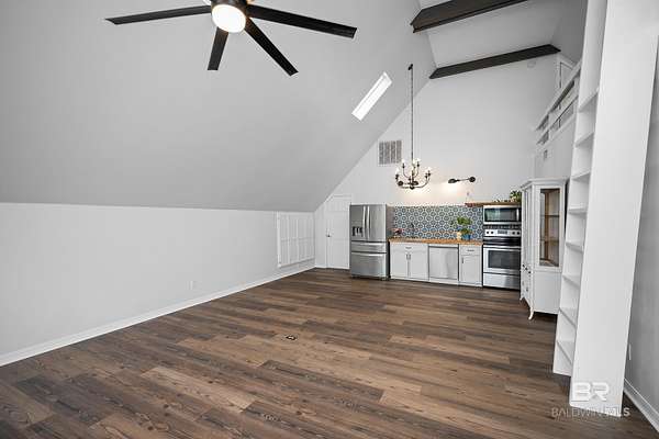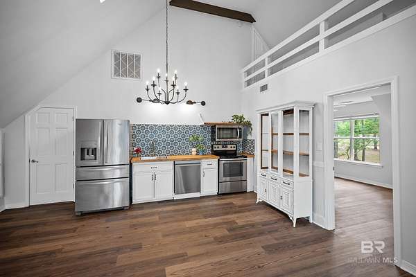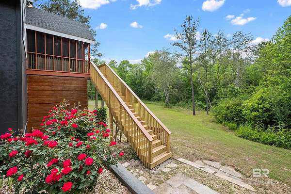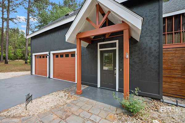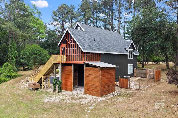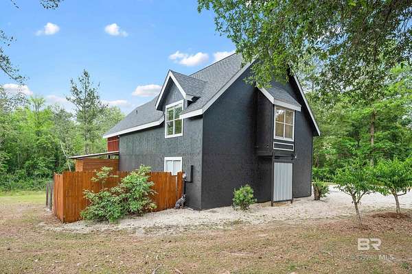 OPEN HOUSE Sunday, April 26th 11am-1pm! Tucked away on 3.8 scenic acres in Stapleton, AL. this charming farmhouse-style retreat offers the perfect blend of privacy, character, and modern updates. Surrounded by mature trees with a peaceful creek running through the property, this home delivers a true country setting while still being conveniently located. The home features 2 bedrooms, office, and 1.5 baths with vaulted ceilings and exposed beams that create a warm, open feel. The interior has been completely refreshed in 2026 with new paint and luxury vinyl plank flooring, complemented by stainless steel appliances and a beautifully tiled shower. Major system updates provide peace of mind, including a fortified roof (2026), HVAC (2020), and a 65-gallon Rheem water heater (2005). Enjoy outdoor living year-round on the screened back porch (16x11), perfect for relaxing or entertaining. The property also includes a spacious 28x28 garage and a large 25x11 outdoor storage area, offering plenty of room for equipment, hobbies, or additional workspace. With its unique character, thoughtful updates, and acreage featuring a creek, this property is ideal for those seeking space, tranquility, and a move-in ready home with NO HOA. Agent is related to the seller Buyer to verify all information during due diligence.