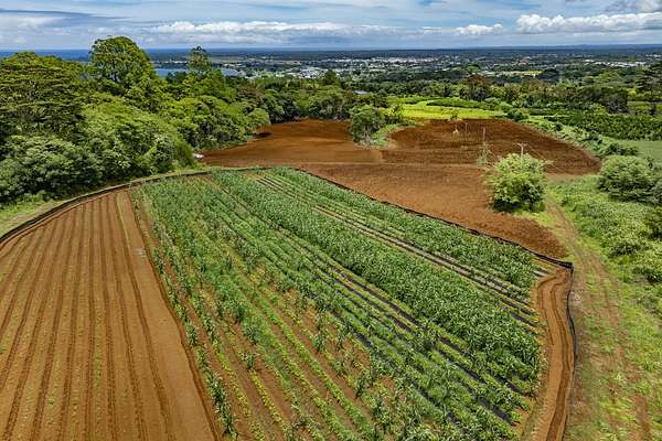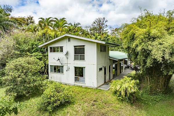 Your private oasis in Hawai'i awaits you, overlooking the city of Hilo with its eclectic local culture and annual international hula festival. - LAND: 30 acres of agriculturally-zoned land with about 15 arable acres of deep, topsoil, and a small orchard of tropical fruit trees. At the 500-foot elevation, there is abundant fresh water and sunlight. The stable climate is ideal for most plants and animals. Annual temperature range is 60 degrees to 80 degrees F. - HOME: Two-bedroom, two-bathroom home includes an office and loft, and attached two-car carport. The interior features high ceilings, louvered doors and windows, and sliding doors, all of which provide excellent ventilation and ample natural lighting. - LOCATION: Country living close to the conveniences and amenities of Hilo on the "Big Island" of Hawai'i, in the Pu'ueo Farm Lots community. Less than 15 minutes by car to stores, post office, farmer's market, County and State office buildings, hospital, and the University of Hawaii at Hilo. Hilo International Airport is 20 minutes away, with daily flights to and from Honolulu, a gateway for global travel.