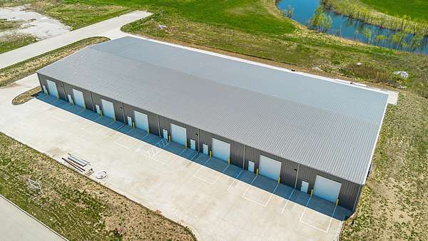 Pre-engineered metal building designed for maximum flexibility and long-term value. The structure can accommodate a wide range of uses, with potential unit configurations ranging from approximately 1,500 up to 24,000 square feet. The building features 16 individual 12? x 14? overhead garage doors, multiple service doors, and is equipped with French drains throughout. Each garage area is stubbed for water, sewer, and natural gas, and includes 200-amp, 3-phase electrical service, allowing for a variety of commercial, industrial or storage applications. The layout provides flexibility for owner-users, business operations, or future investment opportunities. The design allows for potential leasing or sale of individual spaces, offering strong adaptability and upside for investors or users seeking expansion options. All information obtained from seller and public records.