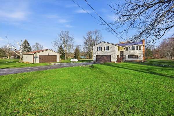 OPEN HOUSE SUN 12.21 11AM-1PM! Refreshed and Ready for You! Dreaming of a little more space and a slower pace? Welcome home to this country retreat in the sought-after Barker School District! With 4 true bedrooms all on the same floor, 2.4 peaceful acres with an electric pet fence, and low taxes~ this home is ready for its next chapter, and it could be yours. Step inside and you'll instantly feel the warmth and cohesive flow in the Open Concept Main Living space with Vaulted Ceilings freshly painted in Sherwin Williams Accessible Beige! The custom 2019 kitchen is the heart of the home, featuring Thomasville cabinetry, stone countertops, and newer appliances~ a perfect blend of style and function. It flows right into the formal dining area where the newer vinyl sliding glass doors bring in natural light and views of your private, tree-lined backyard. The primary bedroom easily fits a king bed and includes a walk-in closet and private half bath, while three additional bedrooms and a full bath make mornings a little easier. The walk-out lower level adds so much flexibility~ whether you need a cozy family room with the propane stove, a home gym, or a dedicated office, there's space for it all. You'll also find a renovated full bath, a large laundry/utility room with built-in shelving (perfect for storage), and even a door right out to the yard. Step outside and enjoy the peaceful, park-like setting~ mature trees and wide-open space! The 768 sq. ft. pole barn (built in 2003) can fit up to four vehicles or easily be transformed into your dream workshop or hobby space. And the best part? Most of the big-ticket updates are already done for you: 2024: Metal roof, water purification system, insulated garage door, front door, and Anderson sliding doors! 2025: Six new windows and fresh laminate flooring! There's still room to add your own style with simple cosmetic touches like flooring~ instant equity, easy living. If you've been longing for country life with room to breathe, this spacious, move-in ready home delivers the best of both worlds~ peaceful living, solid updates, and endless country air!