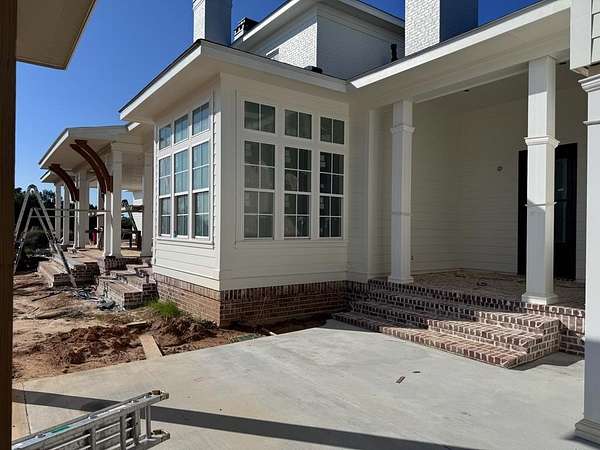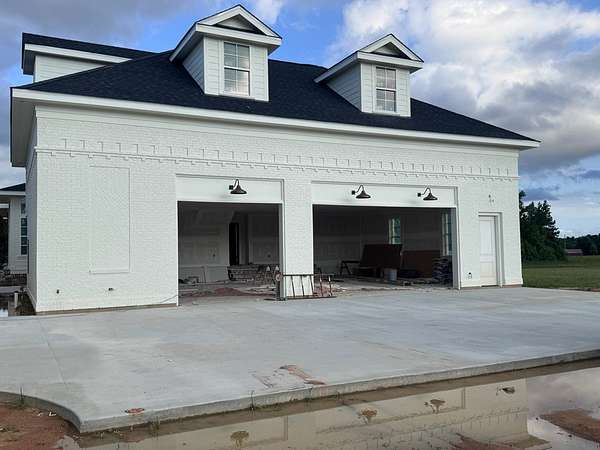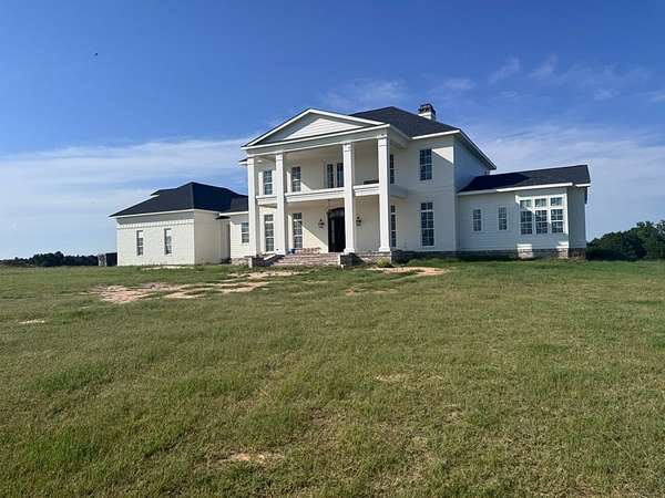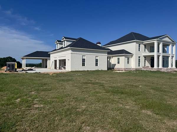 Positioned on a hill top on 100 rolling acres in McNeill, Mississippi, this custom estate offers a rare opportunity to create your dream home. 75% complete, this 8-bedroom, 6.5-bath residence spans 5,797 sq. ft. of living space and 1,600 sq. ft. of covered porches, including an outdoor fireplace with hilltop views. Surrounded by live-oak trees and natural woods, the property offers privacy and beauty. The design emphasizes luxury, with a spacious kitchen, custom cabinetry, and a living room with cathedral ceilings and panoramic views. The master suite features separate closets, a double shower, a soaking tub with views, and a FEMA-rated safe room. Upstairs includes three bedrooms, two baths, and a playroom. Over the 3-car garage, a 1,600 sq. ft. clubhouse provides additional space, plus a detached carport with a full bath, offers flexibility. This home is in the final stages of construction and finishes can be customized.