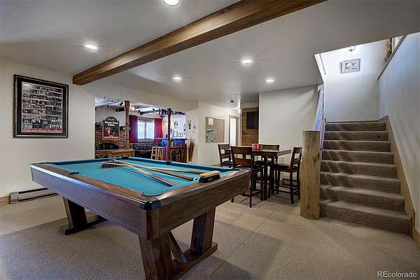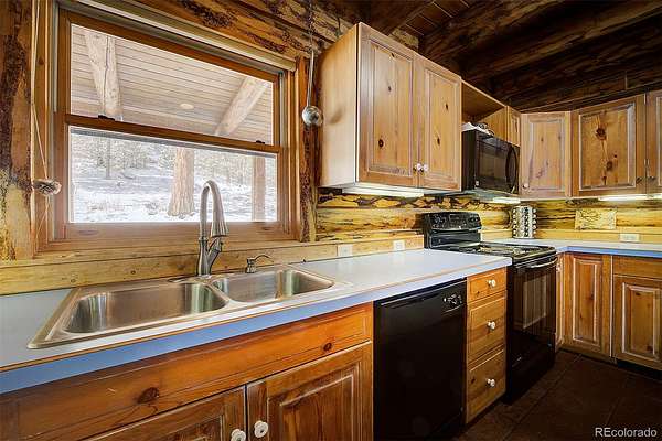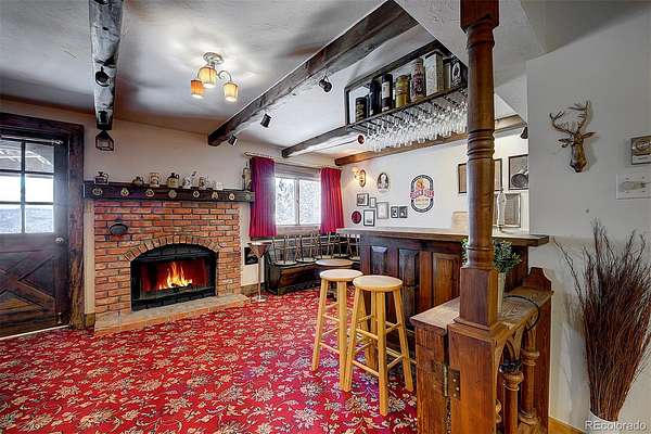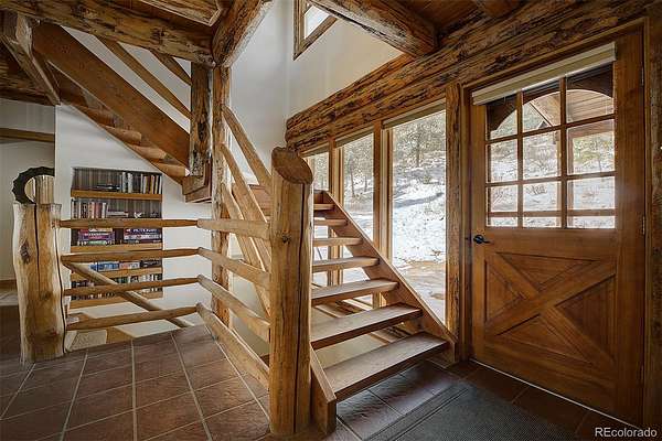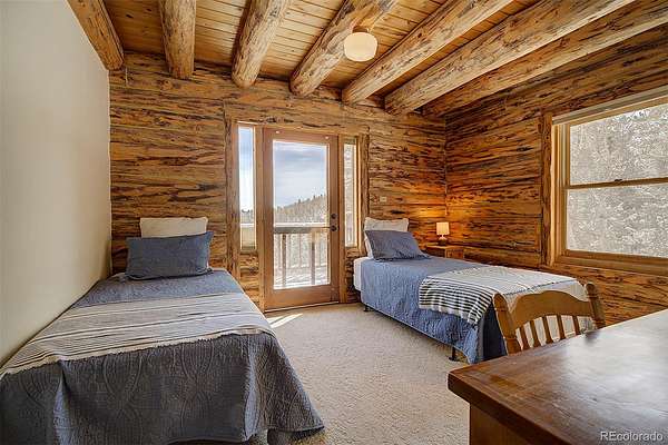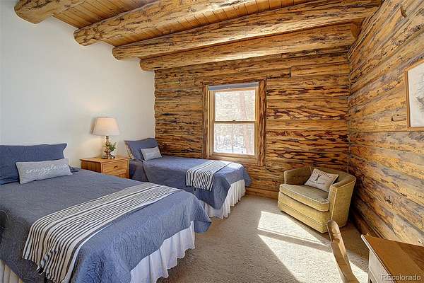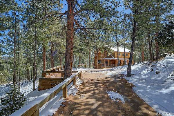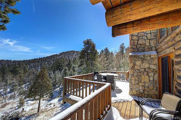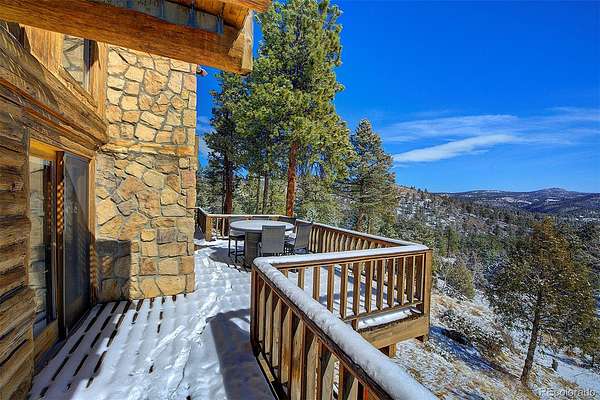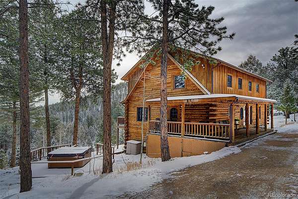 Welcome to The Retreat, a fully furnished Montana Log mountain lodge set on over 15 acres of usable, beautifully treed land with sweeping mountain views and a rare sense of privacy. Whether envisioned as an ideal private home, a multi-generational gathering place, or a residential retreat for clergy, healing, meditation, yoga, or other modalities, this property offers a level of flexibility that is hard to find. Thoughtfully designed with a balance of open gathering spaces and quiet, private areas, the home is crafted from substantial, hand-peeled Montana logs and positioned to capture Colorado’s bluebird skies and long-range views from nearly every window. Multiple decks invite you to start the day with coffee or wind down in the evening with a glass of wine, fully immersed in the landscape. The acreage supports a true Colorado lifestyle with room to explore and enjoy hiking, hunting, horseback riding, four wheeling, and snowshoeing right on your own land, and an outdoor hydrotherapy spa offers a quiet place to end the day under the stars. Inside, the great room centers around a moss rock fireplace and opens to the views beyond, while the lower level game room features an authentic English pub imported from London and reassembled on site, creating a one of a kind space to gather. A private upper wing offers versatility as a primary suite, guest quarters, or separate living space, complete with its own living area, kitchenette, and private deck. There are special use permits in place with the county for use as a residential retreat center, and the well permit was amended to Commercial Exempt status to support a clergy retreat house for up to 8-12 people with ample indoor water usage. Conveniently located with only one stop sign between you and an international airport, approximately 45 minutes to Denver, 1 hour to DIA, and 1.5 hours to Breckenridge. Note septic system is designed for 5 bedrooms and 10 occupants.