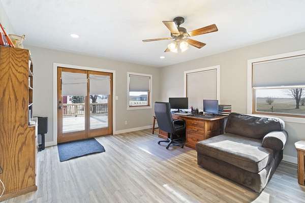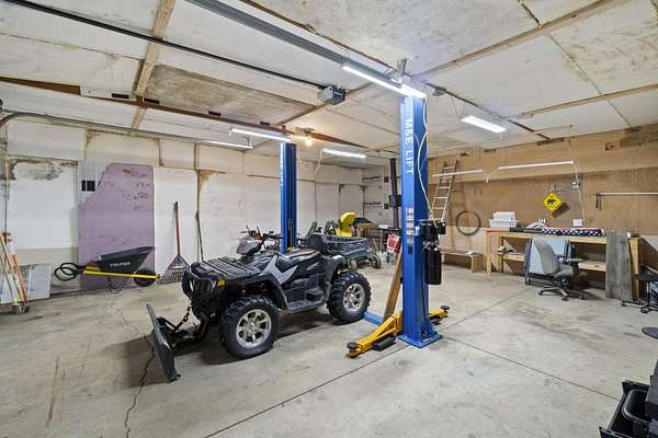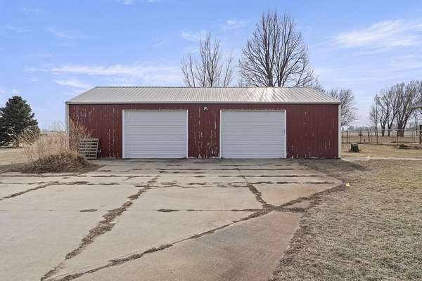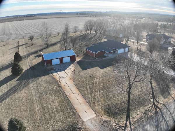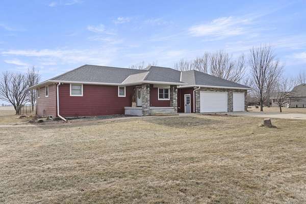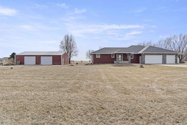 Experience the blend of country living and convenience on this stunning 2.2 acreage, located on a hard-surface road just minutes from Interstate 29and Sergeant Bluff. This impressive 4-bedroom ranch-style home offers approximately 3,600 square feet of thoughtfully designed living space. The main level features two spacious gathering areas, an eat-in kitchen with tile backsplash, and a convenient laundry room complete with cabinetry and utility sink. The primary suite is located on the main floor, along with a separate suite. A sun-filled family room/sunroom at the back of the home features tile flooring and access to the 18' x 14' deck, perfect for enjoying the peaceful acreage views. A half bath completes the main level. The finished lower level offers an expansive living room with a wet bar including sink, dishwasher, and refrigerator. Two additional bedrooms each feature egress windows and double closets, along with a den/office with French doors and egress window ideal for a home office, gym, or guest space.Outside, the property truly shines. The 2.2 acres are fully irrigated by a sprinkler system reaching every corner, fed by a 75-foot well. Enjoy mature apple and peach trees, raspberry bushes, asparagus, raised garden beds, and a partially fenced area just off the large back porch. A 1,000-gallon owned propane tank adds to the property's efficiency. Car enthusiasts and hobbyists will appreciate the 30' x 50' heated shop with a 2-post car lift, as well as the oversized heated 3-stall attached garage..