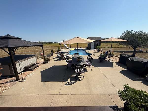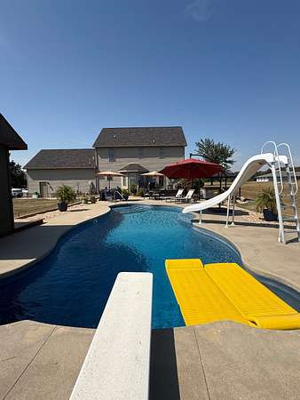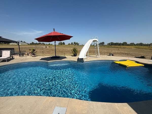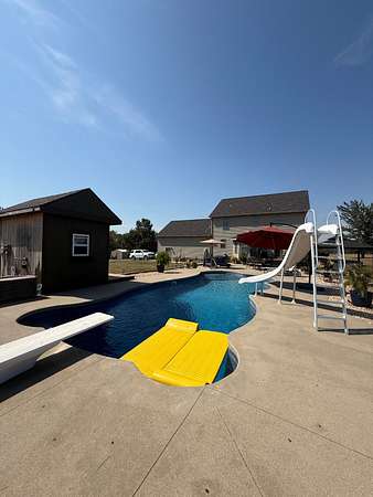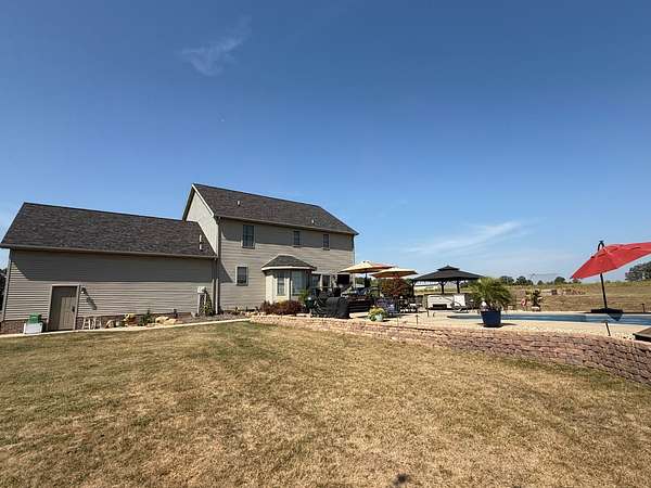 LOCATION IS EVERYTHING!!!! But....there's more....Location, Livability AND Luxury! This immaculately kept home is only 2 miles from town making it the perfect proximity to conveniences. The main floor offers an open and inviting kitchen and family room, perfect for gatherings both large and small. Yet, you will still have some cozy spaces such as the den and the formal dining room. Rounding out the main floor is the powder room, laundry room, spacious pantry and numerous storage closets. The beautifully appointed stairwell leads to an upstairs landing that makes the perfect reading nook. All four bedrooms are quite spacious as are the primary en suite bath and the hall bath. So, that's the livability. Now let's talk LUXURY. As you step out on the custom oversized deck, you immediately realize you have hit the jackpot!!! The extraordinary custom shaped heated pool is the focal point, offering a slide and diving board for family fun. Extensive landscaping and a brand new pool house make this lovely outdoor space somewhere you'll want to spend all your time. There's also a new hot tub that is negotiable if you're interested. All this on four acres... plenty of room for a garden, hobby farm, and/or pole barn shed if you choose!!! This beauty checks ALL the boxes!!! Schedule your showing today!