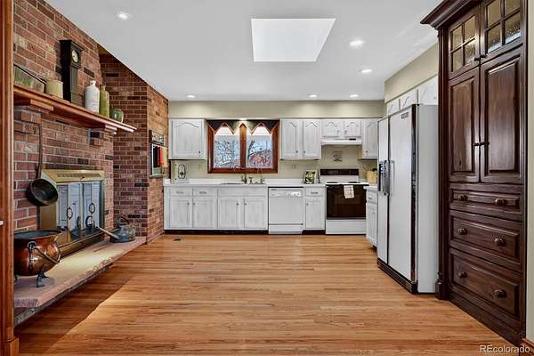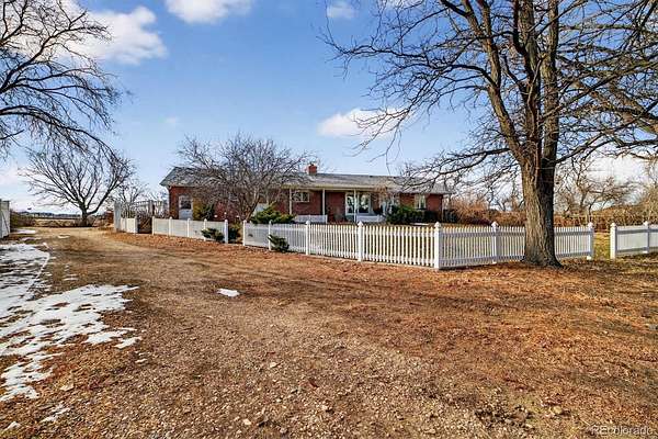 Exceptional opportunity to own 1.73 acres with a fully equipped heated shop—an increasingly rare find at this price point. Offered for the first time and meticulously maintained by the original family, this all-brick ranch blends comfort, function, and future potential. The impressive 1,400 sq ft heated detached garage/shop is a true standout, featuring two 10’ overhead doors, heavy-duty concrete floors, gas heat, workbenches, and an included Ingersoll Rand twin-head air compressor. Easily accommodating 3–4 vehicles or a Class C RV, with abundant additional parking, it’s ideal for car enthusiasts, hobbyists, or business use. Inside, enjoy extensive hardwood floors, exposed beams, hand-troweled texture, craftsman built-ins, and a striking two-sided fireplace. A bright den with skylights offers a peaceful retreat, while updates include Pella windows, main-floor laundry, Cat-5 wiring, and included Starlink and SimpliSafe systems. Major systems are well maintained with gas HVAC + A/C, a boiler backup (2020) with heated bath floors, and a newer roof (2019). The full unfinished basement provides an incredible opportunity to expand—perfect for additional bedrooms, multigenerational living, or a custom finish. Outdoors features a covered porch, fenced yard, mature trees, and updated irrigation. Set back with natural tree coverage for added privacy, yet just minutes to I-76, Hwy 85, Prairie Center, and Barr Lake.