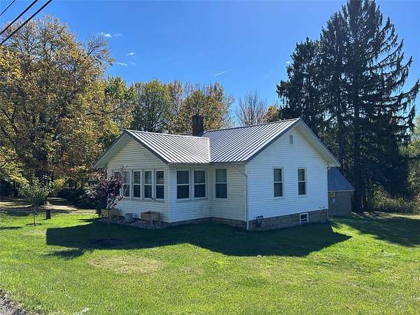 Est $604/moThis charming 2-bedroom, 1-bath ranch sits on 1.5 acres just outside of town, offering the perfect blend of privacy and convenience. The spacious yard provides ample room for a garden and outdoor entertaining. A single-car garage offers additional space for storage or lawn equipment. Inside, the main level features a cozy eat-in kitchen, comfortable living room, and two bedrooms. The full, unfinished basement offers potential for extra living space-just add a rug and a couch to create a cool hangout area. Enjoy peace of mind with brand-new windows throughout the home (excluding the sunporch). Don't miss this great opportunity!