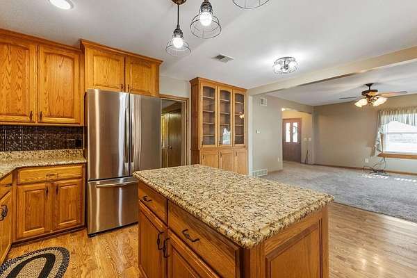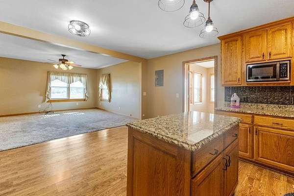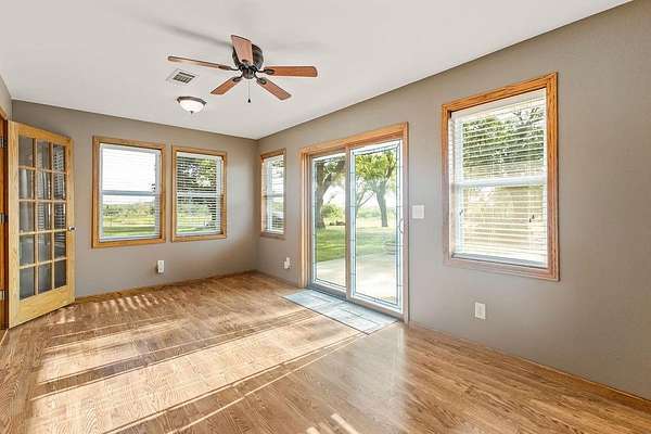 This is the property that does NOT come available very often........beautiful home......acreage.......several outbuildings.....AND on blacktop just off I-35 in a GREAT location!! 6+ acres MOL, 4 bedrooms, 2 1/2 bath, 2 car attached garage on the house with an asphalt driveway the home also has an underground storm shelter The home has a gorgeous stairway to the upstairs! The kitchen has beautiful custom oak cabinetry with outlets in each cabinet and granite countertops PLUS a 24' X 24' carport, a 30' X 15' insulated and climate controlled garage, and a 100' X 30' building with a workshop on one side and livestock pens on the other side