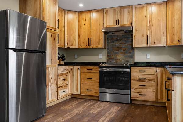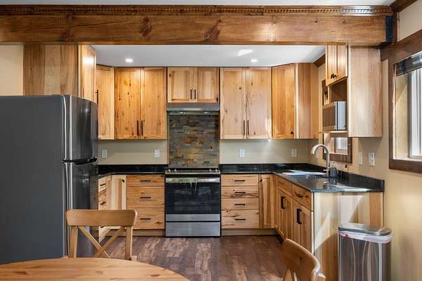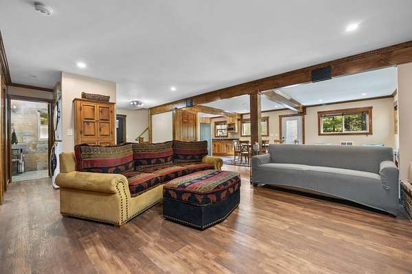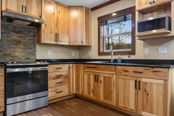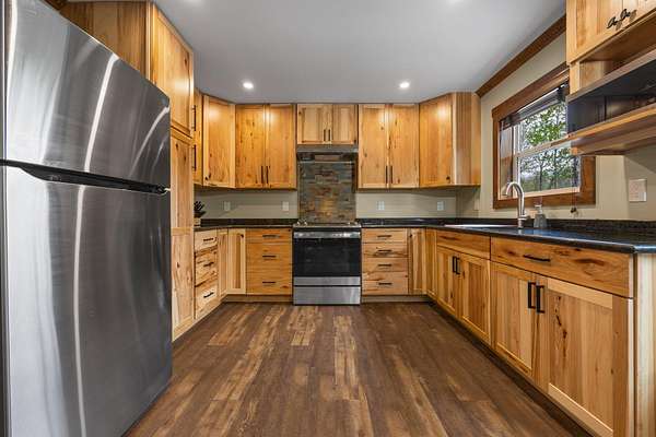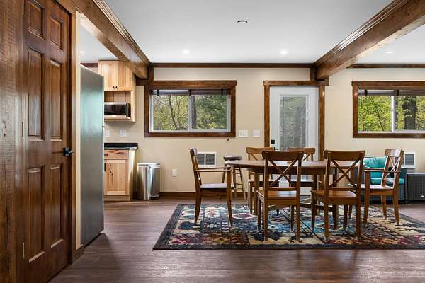 Completely updated 3 bedroom, 2 bath home offering modern finishes, functional layout & peaceful surroundings. The interior features natural hickory cabinetry paired with granite countertops & stainless appliances, creating a clean, timeless kitchen space. The floor plan includes a spacious living area plus separate dining & additional sitting space for flexibility.Copper Ridge Oak luxury vinyl flooring runs throughout the home, offering waterproof durability with a lifetime warranty. Numerous improvements have already been completed, including roof, insulation, plumbing, wall units & vinyl siding. Both bathrooms have been redesigned, including one configured as a full wet room. Outdoor features include more than 900 sq ft of wrap around Trex decking overlooking a pond, set on 1.6 acres.