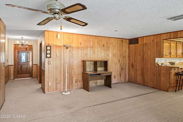Horse Property with Stunning Views in Catalina! Welcome to your desert retreat on 2.77 acres in beautiful Catalina! This 3 bedroom, 2.5 bath home offers room to roam both inside and out. The heart of the home is a spacious great room just off the kitchen, complete with a cozy wood-burning fireplace perfect for chilly desert evenings. The kitchen features ample cabinet and counter space, making meal prep a breeze. You'll also love the additional living room with custom built-in shelves ideal for a home office, reading nook, or media space. Step outside and take in the breathtaking mountain views. Horse lovers will appreciate the existing shelter structures (some to convey), and there's plenty of space to expand your equestrian dreams. Whether you're looking for peaceful solitude or room to grow, this property offers endless potential.