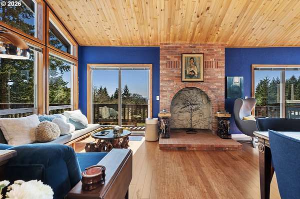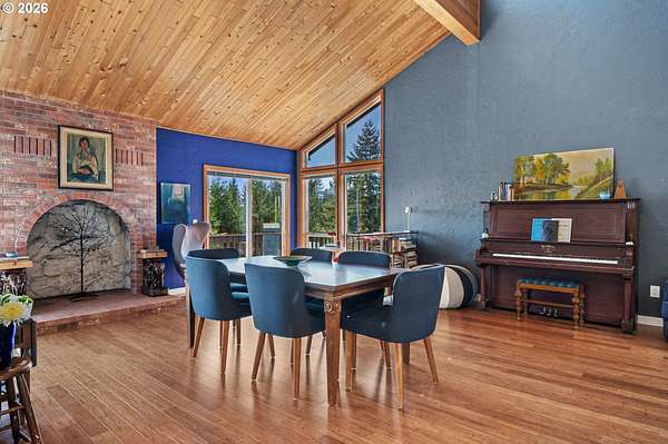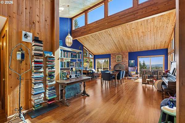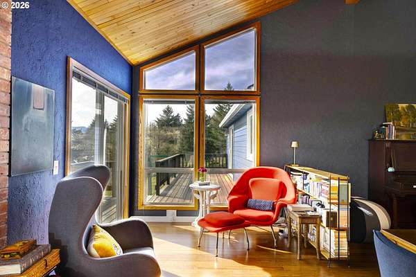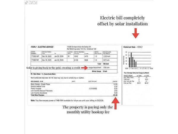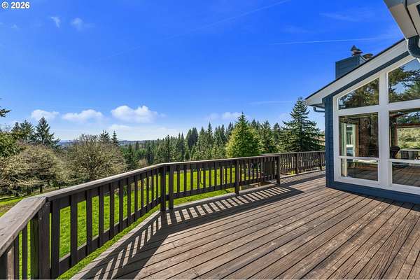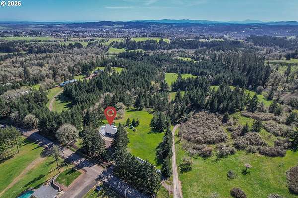 The best of all possible worlds--what does that look like? Consider this: a house facing south on a 5.08-acre parcel, with vast Contemporary-style windows looking out to an expansive meadow starry and fragrant with wildflowers, welcoming to deer, rabbits, and an astonishing variety of birds, from the bald eagle to the burrowing owl. From the wraparound deck, you can see the mountains; sunrise and sunset paint the sky. The house is a delightful blend of dramatic and homey, with a huge and stunning vaulted living room that leads to a cozy dining room and well-designed kitchen with a ton of storage. The main level has two sizeable bedrooms in addition to the wonderful primary suite, with its custom built-in shelves and attached bath. The lower level gives you studio or office space, a media room, another bedroom, and direct access to a patio shaded by the deck, a convenient hangout on sunny days. Speaking of sunny days, you'll be so grateful for the state of the art solar panels, installed on the metal roof of the shop. The system is fully owned and works so well that it gives back to the grid--if you're concerned about rising electricity costs, you'll be buying inflation-proof power. Along with the attached double garage, there is a separate drive-through shop, 1471 SF waiting for your projects...it has 15- and 20-amp circuits, and unlike most shops, it also has its own heat pump and is fully insulated, so you can work in complete comfort. All this, plus a magical location; it feels like the countryside, but it's so convenient to Dallas that you can still order DoorDash; and if you feel like cooking, you're in the heart of farm-to-table bounty. Benedetto Winery is down the road, and Eola Hills/Amity 20 min away. You're 3 minutes from the legendary Baskett Slough National Wildlife Refuge. You're less than an hour from the ocean and a little more than an hour to Portland or Eugene. Still looking for the best of all possible worlds? It's right here.