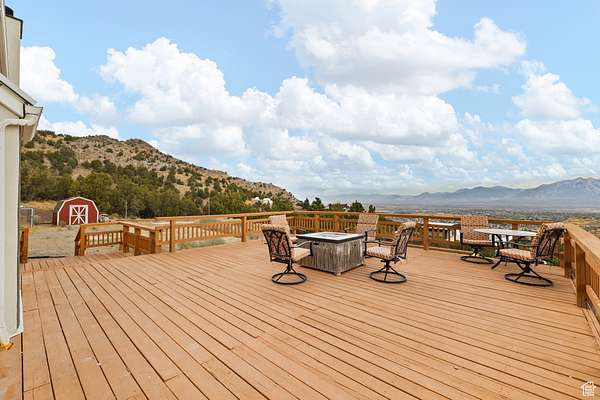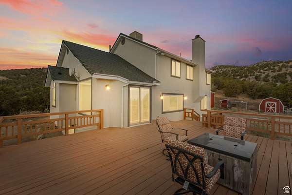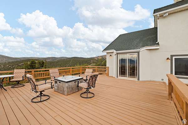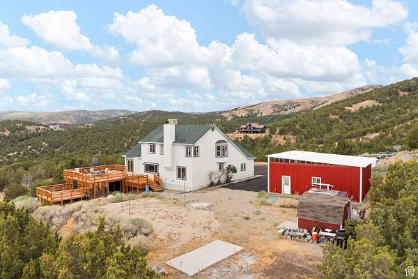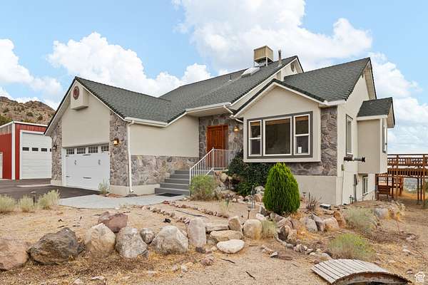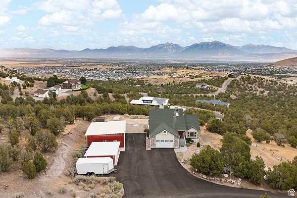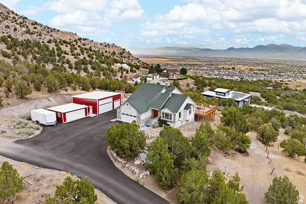 Seller offering 1/0 rate buydown with preferred lender - 5.321% first-year rate available. Contact agent for details. Welcome to the Top of the World-Literally. Have you ever dreamed of living above it all? Perched at a breathtaking 5,640 feet in Herriman-just 360 feet from the mountain's summit-this extraordinary estate offers more than just a home... it delivers a lifestyle few will ever experience. With panoramic, jaw-dropping views stretching from Salt Lake to Provo, this property captures one of Utah's most iconic and unforgettable vantage points. Each morning, wake to nature's masterpiece as the sun rises over the Wasatch Front, casting hues of gold, rose, and amber across the valley below. Floor-to-ceiling windows and expansive decks bring the outside in-immersing you in the natural wonder of shifting skies, towering peaks, and the peaceful rhythm of mountain life. As night falls, the valley transforms into a glittering sea of lights-a cityscape that stretches endlessly beneath a canopy of stars. Whether you're sipping coffee at sunrise or hosting friends under the evening glow, this home offers a front-row seat to nature's most dazzling performances. From the moment you arrive, a stunning water feature greets you, setting the tone for the elegance and serenity found within. The formal living room welcomes guests, while the open-concept family room and chef's kitchen are designed to impress. The kitchen is a true showpiece, featuring a farmhouse sink, peninsula island with bar seating, tile floors, and a sun-soaked dining area framed by modern windows. The vaulted family room boasts a cozy gas fireplace and show-stopping valley views that will leave you breathless. The main level also features a generous laundry room with dual washer/dryer setups and a peaceful primary suite that captures the same awe-inspiring vistas. Step outside onto the expansive deck-your private stage for unforgettable sunsets, summer fireworks, and tranquil starlit evenings in this pristine, quiet location. Upstairs, you'll find three additional bedrooms, including a luxurious second primary suite with vaulted ceilings, bay windows, a spa-like jetted tub, separate shower, modern vanity, and a spacious walk-in closet. The daylight walkout basement is built for entertainment, featuring a large family room, wet bar, and access to the lower deck-perfect for a hot tub under the stars. A stylish three-quarter bath, oversized storage/den space, and potential for a full mother-in-law suite add flexibility and function. Additional Highlights: freshly updated exterior stucco and newly paved private road, main garage with epoxy floors and custom storage, two detached shops (one fits 23 vehicles, the other 34, ample RV parking and a large storage shed, fenced corral-horse property potential, pellet stove, dog run, and thoughtful upgrades throughout, proven Airbnb potential ($200$450/night, seasonally) This is more than just a home-it's a mountaintop masterpiece. Opportunities like this are rare. Come claim your slice of the skyline. Buyer and Buyer's Agent to verify all information. Square footage figures are provided as a courtesy estimate only. Buyer is advised to obtain independent measurements.