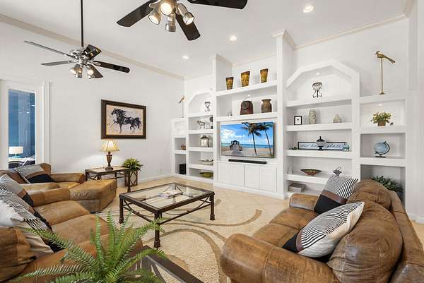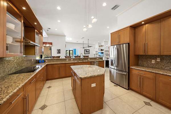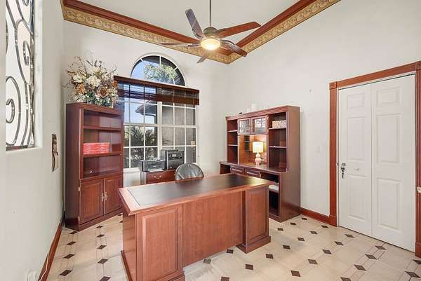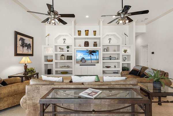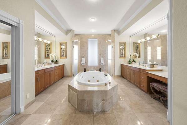 - Bar, Built-In Features, Cabana Bath, Cathedral Ceiling(s), Closet Cabinetry, Custom Mirrors, Entrance Foyer, High Ceilings, Kitchen Island, Pantry, Roman Tub, Split Bedroom Layout, Vaulted Ceiling(s), Walk-In Closet(s), Wet Bar