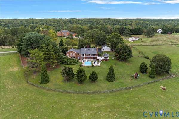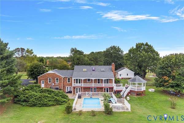Located on 10 scenic acres with tranquil lake views and just minutes from The Hollows Golf Course, this beautifully maintained brick Cape Cod offers just over 4,000 square feet of comfortable living space. Priced at 2026 tax assessed value. Mill Creek Estates residents enjoy private access to the 37-acre lake along with two private access points to the South Anna River; perfect for canoeing, kayaking, and fishing. The fenced backyard and partial fencing throughout the rest of the property also make this property ideal for dogs, horses, livestock, or just picturesque views of your own personal paradise. Inside, the main level features a spacious family room with tile flooring, fresh paint, plantation shutters, and a cozy gas fireplace, opening to a 40' x 6' covered balcony overlooking the pool and patio areas. The kitchen and dining area offer an island, tile floors, plantation shutters, and two pantries, with a nearby laundry room that includes cabinetry for added storage. The first-floor primary suite is privately situated with its own exterior entrance and separation from the rest of the home. It includes a new mini split heating and cooling unit, a generous bathroom, two walk-in closets, and a linen closet. Upstairs, you'll find two additional bedrooms and a full bath. The Lower level offers the 4th bedroom and a large recreational area or potential for a 5th bedroom, a wood-burning fireplace, a utility storage room, and a jack-and-jill-style full bath. Potential multi-generational living, with separate entrances on the lower level and in the first-floor primary bedroom. Step outside to your personal retreat featuring a gated 28' x 14' salt water in-ground pool, a 14' x 14' gazebo ideal for morning coffee or sunset views, and an outdoor firepit just off the pool area; perfect for gathering with friends and family year-round. Additional highlights include a detached 2-car garage, a Generac standby generator with automatic start, a whole-house water filtration system, and a roof replaced in 2021.