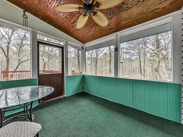 This is the quiet mountain escape you've been looking for-perfect for your weekend getaway, or short-term rental opportunity! Tucked away on the edge of Ellijay and only 15 short minutes from downtown, this charming 2-bedroom, 2-bath home offers a peaceful mountain retreat surrounded by beautiful wooded scenery. The master-on-main allows for easy access and everyday comfort, with an additional office or flex space that will adapt effortlessly to your needs. Upstairs a cozy loft overlooks the main living area and leads to a second bedroom and full bath-ideal for guests or family. The open-concept kitchen flows into the dining and living areas, which also features double door access to the huge, quiet back porch. This creates an inviting space for gatherings and entertaining of all types! Outside you will find a detached 20x20 metal building with a carport and lean-to, perfect for storage, hobbies, or outdoor equipment. A separate driveway leads to a fully equipped RV hookup site, ready for travel and adventure. The home also includes a professionally encapsulated crawlspace by Aquaguard, backed by a lifetime structural warranty. The opportunities here are endless-schedule your showing today!