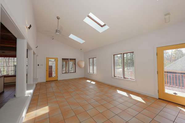 A rare combination of space, setting, and versatility in Kennebunkport, just minutes to Dock Square, set on 4.91 acres with privacy and flexibility throughout. This multi-level home features 4 bedrooms, 2 full baths, a bright loft/home office, a dedicated laundry room, and several oversized living spaces. The layout is open yet defined and highly adaptable. The home has been transformed over time. You'll find renovated bathrooms, interior paint throughout, updated lighting, electrical improvements, new doors, and updated appliances, along with many additional updates - see full list attached. With so much already completed, it's ready for the next owner to bring their vision and add the finishing touches to make it their own. A standout feature is the bright main living area with cathedral ceilings, skylights, and exposed beams, filled with natural light and character. Built-ins throughout add both function and charm. A large front deck and spacious rear deck are seamlessly connected by a wraparound walkway, creating easy flow around the home, along with a fully screened-in sunroom to enjoy the space even more. Additional highlights include a massive garage with excellent space for storage, workshop, or home business potential, and a full horseshoe driveway.