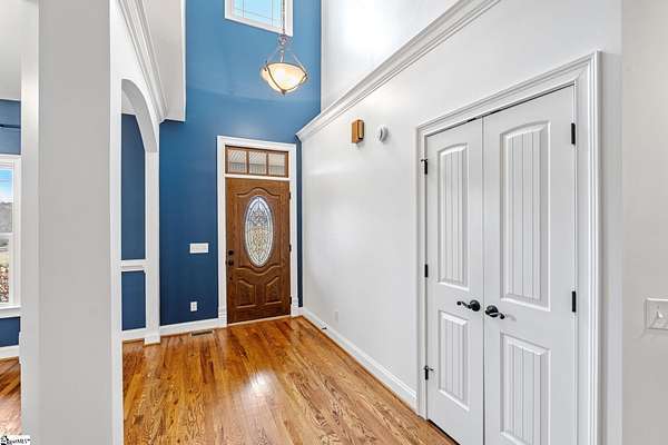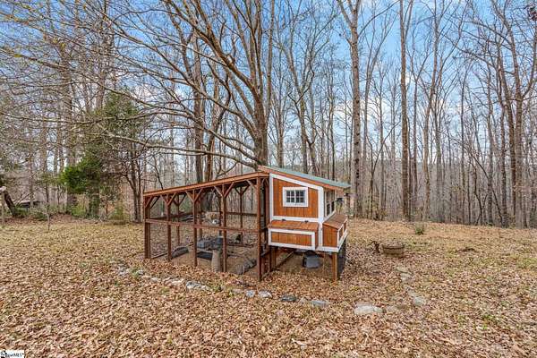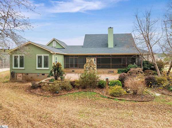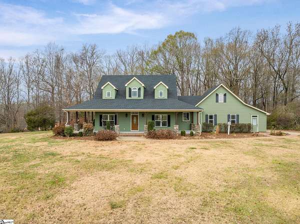 Dreaming of the country life? Your own private mini-farm awaits just south of Fountain Inn on 5.28 acres! This gorgeous custom-built farmhouse sits up on a knoll overlooking the surrounding farms. Relax on the shady wrap-around porch and take in the lush landscaping, rolling green hills, and grazing horses. Upon entering the home, you will notice the gleaming site-finished hardwood floors and soaring ceilings. Those winter nights are cozy in the main living area with the stacked stone wood-burning fireplace, and there is plenty of room to entertain between the open floorplan, large kitchen with breakfast bar, formal dining room, sunny breakfast area, PLUS an amazing 32 foot long screened porch that runs the back length of the home. Spacious master suite has vaulted ceilings, huge windows, and a luxury bath. Between the garage and kitchen, there is a large laundry/mud room with pantry and half bath. Other features of this home include energy-efficient spray foam insulation, two large attic spaces for storage, tankless gas water heater, and so much more! Property has a creek at the back and the wooded area has walking paths and a private shooting range! Only 5 minutes to downtown Fountain Inn and 10 minutes to Fairview Road!