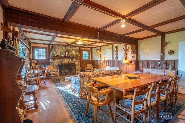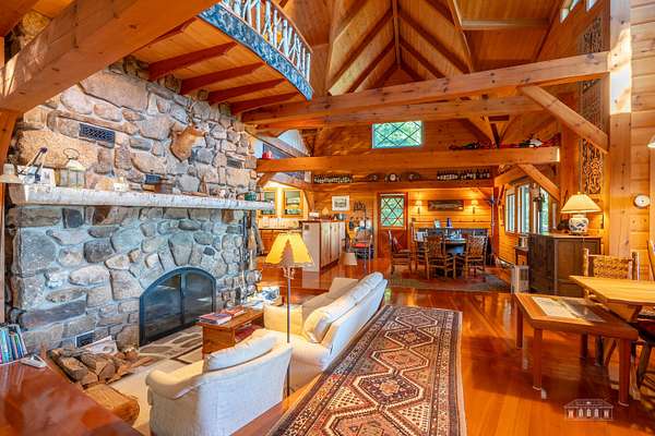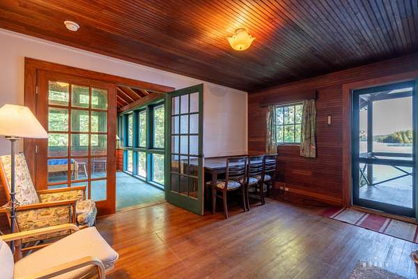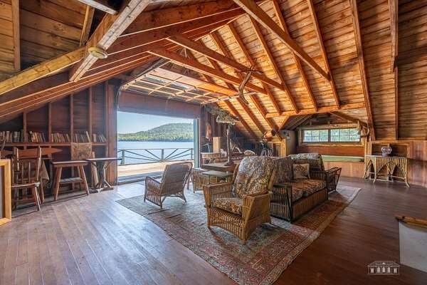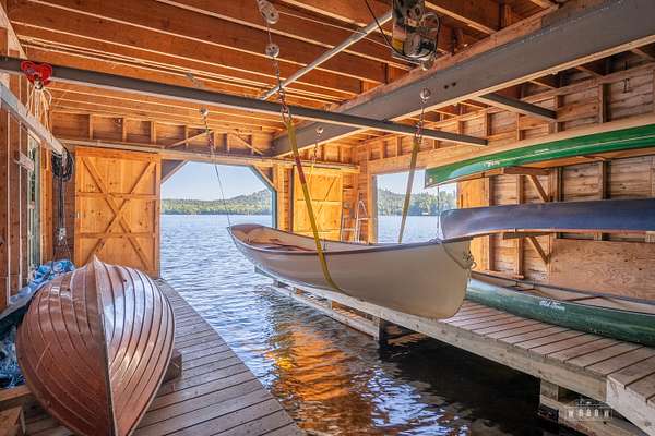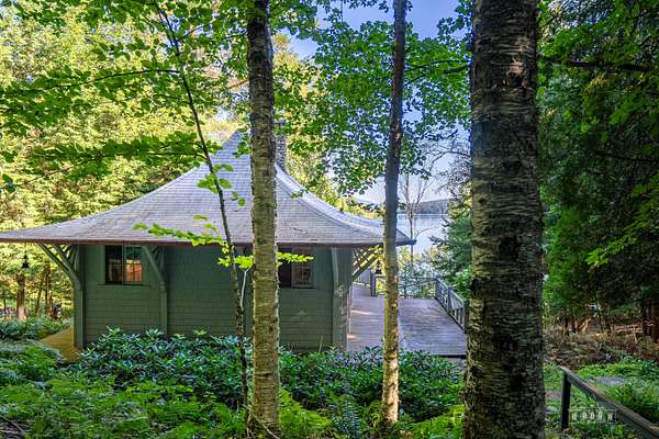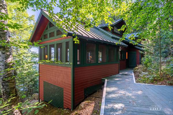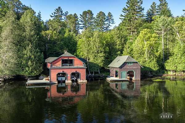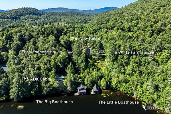 A ONCE-IN-A-LIFETIME OPPORTUNITY - Own the storied Panther Cove Compound on Upper Saranac Lake, NY, a true legacy estate assembled over 45 years by Mrs. Emily Donald beginning in 1928. Now spanning 16.5 acres with 482 feet of shoreline, this rare Adirondack waterfront compound includes 6 unique buildings, 2 garages, mature forest, and exceptional privacy. Main residences sit 300+ ft from the lake, screened by trees and manicured lawn. The White Farm House (c.1890s) offers 3 bedrooms, 2 baths, a cozy fireplace, renovated kitchen (2019), new windows (2023), and original charm. The Japanese House, built around 1910, is a whimsical 2-bed, 1-bath retreat with moon window, cedar bark ceilings, hemlock floors, and stone fireplace. The historic ADK Cabin, built c.1937 near the water's edge, includes 3 beds, 1.5 baths, a sleeping porch, and garage. The Main House is a winterized 3-bed, 2-bath home with 2 fireplaces, open-plan living, Waterford wood cookstove, and a stunning 60-ton masonry core. The Big Boathouse (c.1937) features 2 long vintage slips, hoists, concrete base (~15 yrs old), and upper lounge with rooftop lake views. The Little Boathouse, on cribbing, includes a single slip and hoist. Both have winter bubblers and ice protection. The property includes deeded ROW access from Panther Mt. Rd and an original drive at the SW corner. Most furnishings included. Secure your place in Adirondack history-opportunities like this are exceedingly rare.