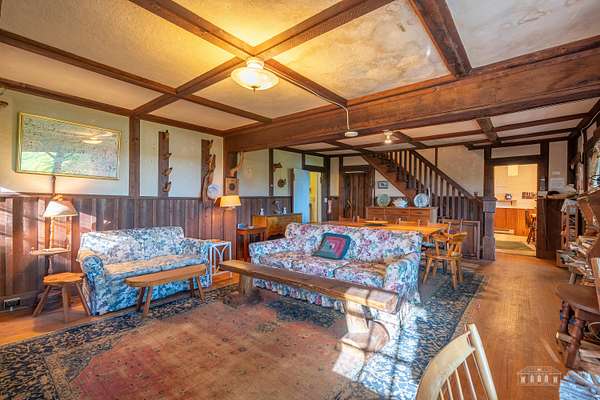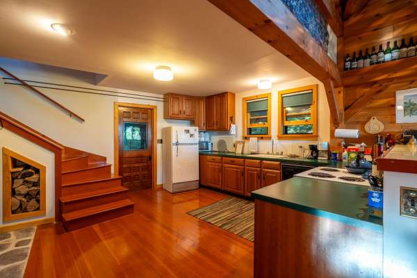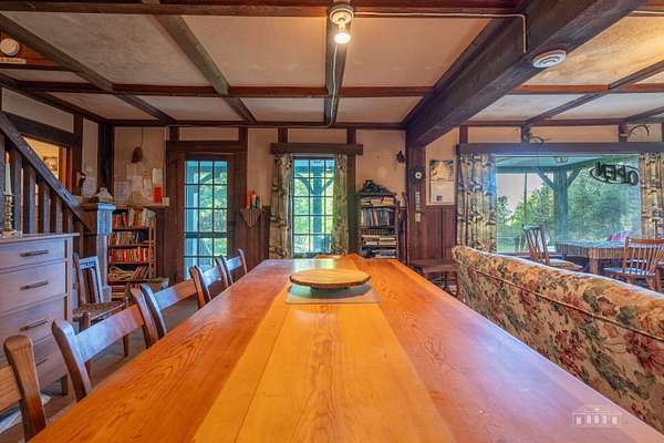 - Beamed Ceilings, Bookcases, Cathedral Ceiling(s), Open Floorplan, Primary Downstairs, Vaulted Ceiling(s)