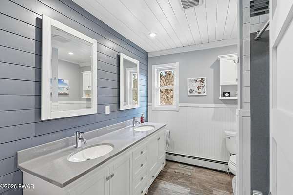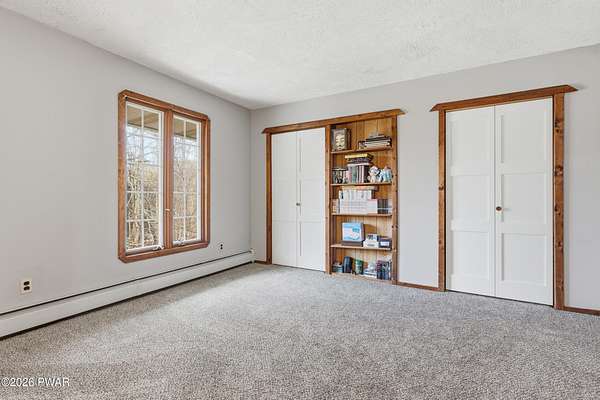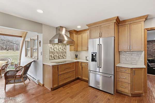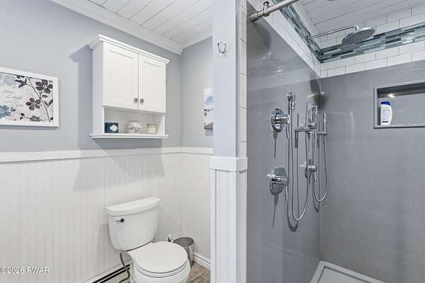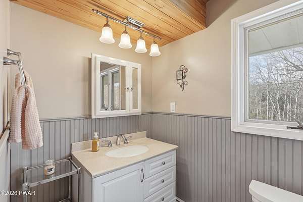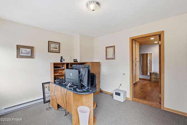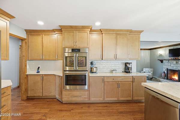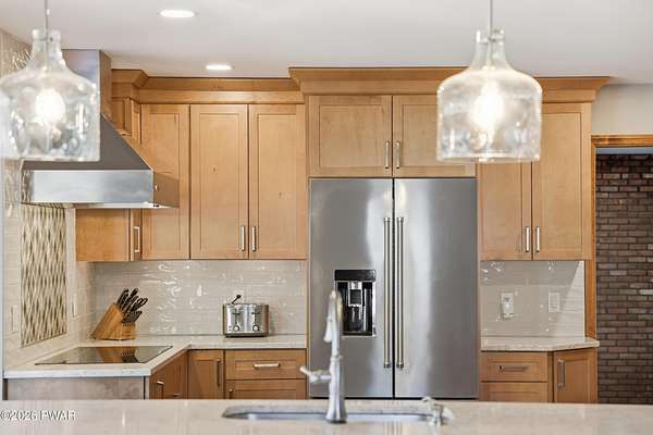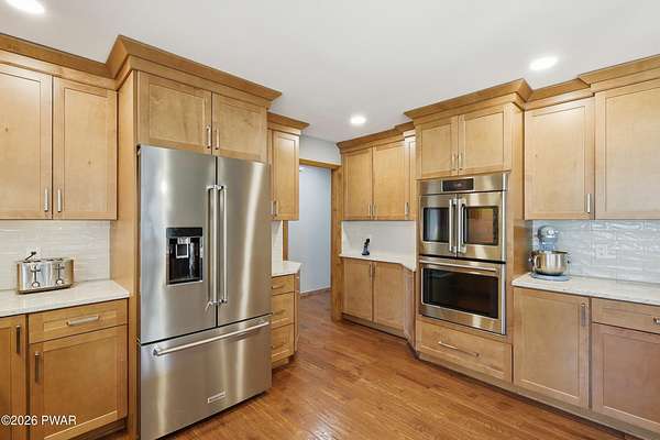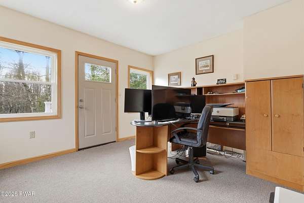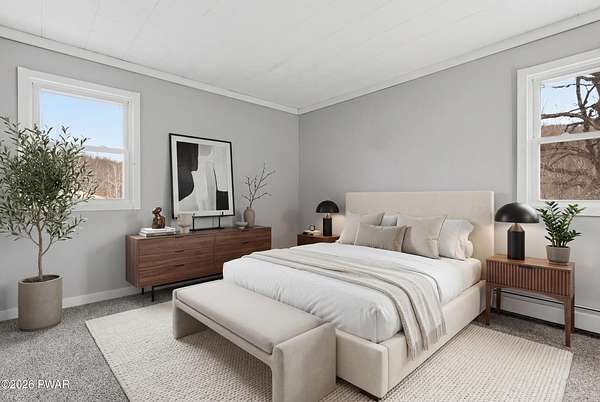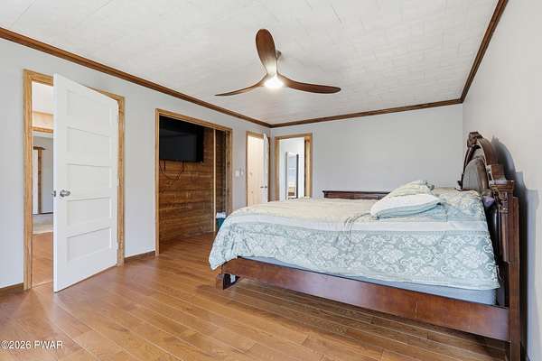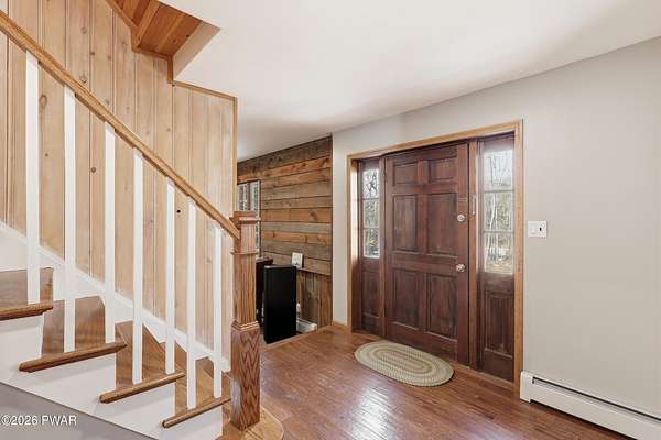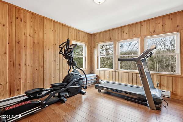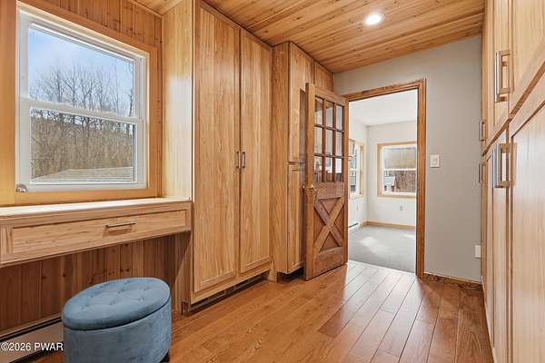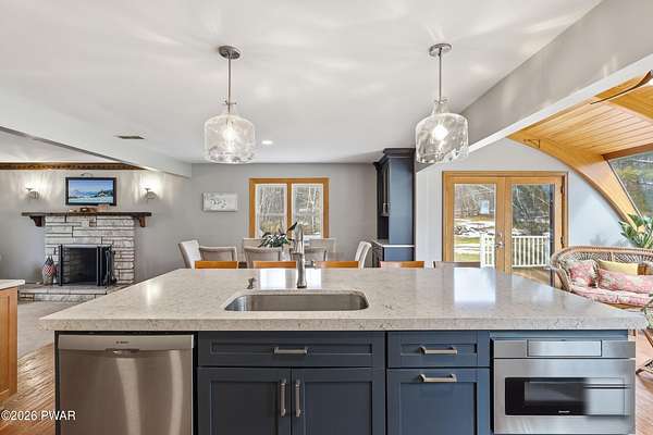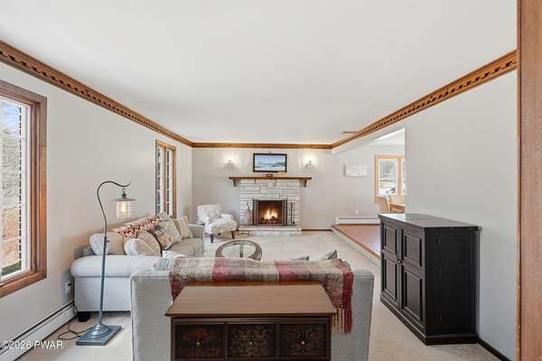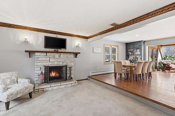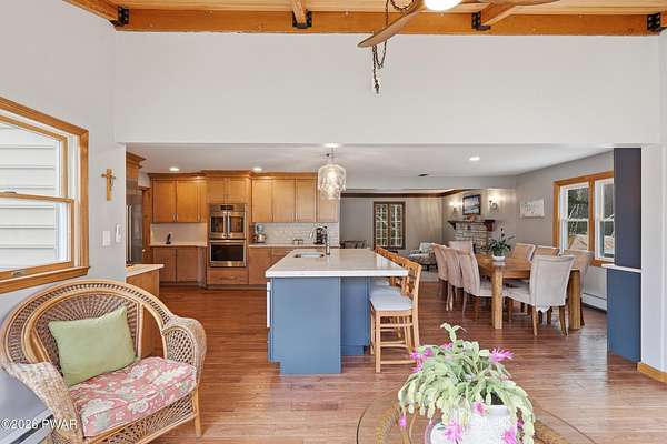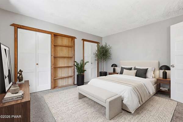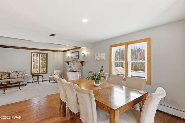 Set across 20 private acres with sweeping views of Elk Mountain, this extraordinary Northern Poconos estate offers a rare combination of space, privacy, recreation, and unforgettable entertaining areas. A long winding driveway welcomes you through open lawn, mature trees, and apple and pear trees with blueberry bushes scattered throughout the property, creating a beautiful natural landscape that feels both peaceful and productive. Perfectly located just 10 minutes to Elk Mountain Ski Resort, 15 minutes to Forest City, and about 40 minutes to Lake Wallenpaupack, the property also features 127 feet of frontage along the Rails & Trails system, allowing direct access for ATV riding, snowmobiling, biking, and year-round outdoor adventure right from your own land. The land itself attracts abundant wildlife and offers incredible opportunities for nature watching, outdoor recreation, and enjoying the natural surroundings right outside your door. The centerpiece of the estate is an impressive 4,000+ square foot, 5-bedroom home positioned to take full advantage of the mountain views and surrounding scenery. Inside, the home offers a spacious and welcoming layout designed for both everyday living and entertaining, featuring beautiful wood accents, an elevated dining area, a bright sunroom with incredible views, and a gourmet kitchen with large center island and custom cabinetry that serves as the heart of the home. Whether hosting gatherings or enjoying quiet mornings overlooking the property, the design blends comfort with function. The third floor has already been plumbed and wired for a future one-bedroom suite, offering excellent flexibility for guests, extended family, or additional rental space. Fiber-optic internet provides lightning-fast connectivity throughout the home, making remote work, streaming, and smart home living seamless. Beyond the home, the property transforms into a true lifestyle compound with incredible amenities rarely found together.
