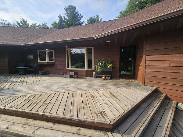 (202/BZ) Don't wait on this Phillips home and 2.2+/- acres as it is priced to sell and will not last long. Located on CTH F on the edge of Phillips, this 3 bedroom, 2 bath home has been updated, very well kept, and has co-ownership of 40 feet of frontage on Long Lake which is part of the Phillips Chain of Lakes. The mostly one level home boasts a warm fireplace, bamboo wood floors, cathedral ceilings, open living area, beautiful landscaping which includes small ponds and waterfall, large multilevel deck with gazebo, spacious yard, large pole shed, a heated workshop, with dock and sitting area. There is a backup generator, black topped driveway, and much, much more. You can feel and see the quality of this property as soon as you pull into the driveway. Call today to learn more. 2024 taxes: $4,492.93 (07-37N-01E Ridgeway terrace lot 2 & lot 1 excpt Hwy Row & Prt of Govt Lot 16)