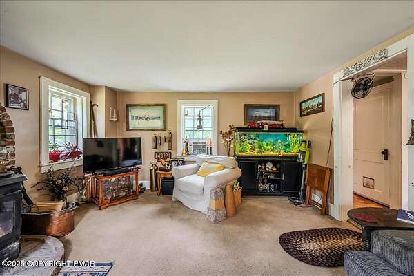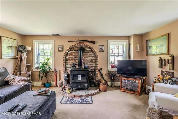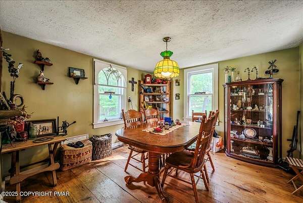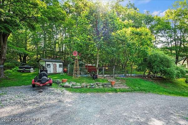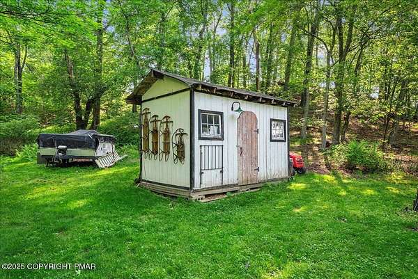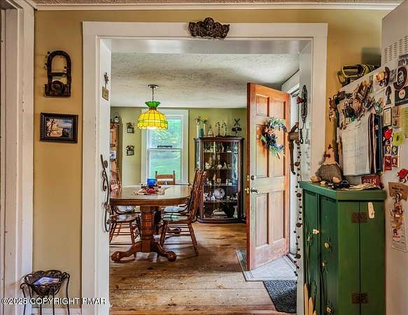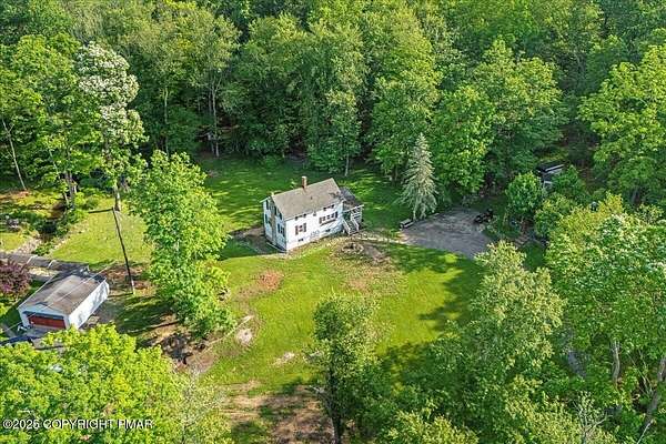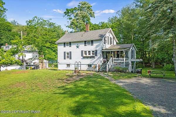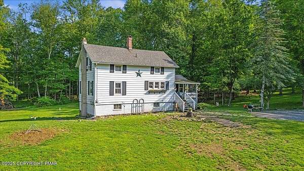 Enjoy timeless farmhouse charm and an unbeatable location in this 2 bedroom, 2 bath home on 2.92 acres in Shawnee. Just minutes to Shawnee Mountain Ski Area, Route 209 in Marshalls Creek, and I-80 at the Delaware Water Gap, this property offers both convenience and privacy in a short-term-rental friendly location with no HOA restrictions. Step inside to find original wide plank floors, a cozy living room with wood-burning stove, and a bright, practical layout. Upstairs, two light-filled bedrooms provide warmth and character, while the main level features comfortable living and dining spaces ideal for everyday life or weekend gatherings. Outside, a long driveway provides ample parking with room to add a garage, and the nearly 3-acre lot gives you space for gardens, outdoor entertaining, or simply enjoying the quiet. The setting is a dream for nature lovers - Bushkill Falls, Dingmans Falls, Raymondskill Falls, and endless trails throughout the Delaware Water Gap National Recreation Area are all just a short drive away, along with river adventures on the Delaware. Whether hiking, cycling, paddling, or skiing, recreation is always within reach. And the slopes are right next door - seriously! Perfect for those seeking a full-time residence or a weekend retreat, this farmhouse delivers charm, land, and lifestyle in one of the Poconos' best locations. A truly rare opportunity at this price-point - call for your private tour today!