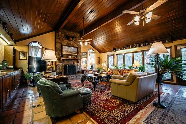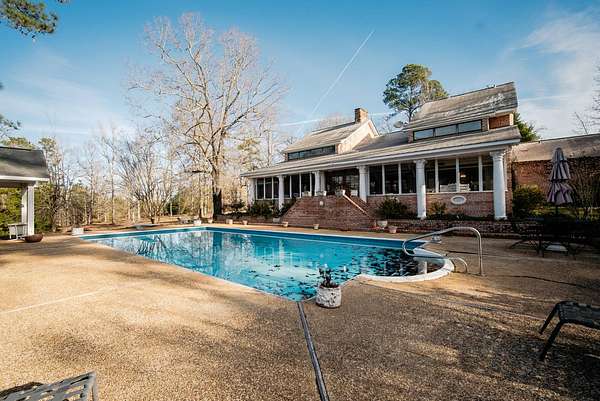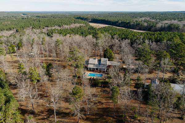 Located in Winston County, Mississippi, this impressive estate offers a rare combination of comfort, privacy, and recreational opportunity with direct access from 144 Gum Branch to Highway 25 in Louisville, MS 39339. The property is conveniently situated 8.2+- miles northeast of Louisville, 20.2+- miles southwest of Starkville, and 122+- miles northeast of Jackson, making it an ideal full-time residence, weekend getaway, or legacy tract in a highly desirable region of Mississippi. Set on 52.04+- surveyed acres, this property features a spacious 4,987+- square foot two-story home with an incredible 1,260'+- of frontage on Highway 25. The home offers 5 bedrooms and 4.5 bathrooms, providing ample space for a large family, hosting guests, or entertaining. A standout feature is the large primary suite, complete with an oversized bath for added comfort and privacy. In addition to the main living areas, the home includes dedicated office space, and an additional detached office that is perfect for working remotely, running a small business from home, or creating a private guest suite, hobby room, or studio space. Inside, the home showcases timeless craftsmanship and warmth with hardwood flooring and ceramic tile throughout, offering both beauty and durability. Four fireplaces create a cozy atmosphere across multiple rooms, adding charm and character while enhancing comfort during the cooler months. The layout and size of the home make it ideal for both everyday living and large gatherings, with plenty of room to spread out while still feeling connected. Step outside and you'll find exceptional outdoor living space designed for relaxation and entertaining. A large screened-in back porch provides the perfect place to enjoy morning coffee or evening conversations while overlooking the backyard setting. The swimming pool adds another level of enjoyment, creating a true retreat-like feel for family and friends during the warmer seasons. The property is also well equipped with functional improvements for storage, equipment, and agricultural use. A detached 2-car carport provides covered parking and easy access, while a storage shed and covered storage area offers plenty of space for tools, supplies, recreational gear, and farming equipment. For those looking to maintain animals or pursue a rural lifestyle, the land includes approximately 7+- acres of pasture and a barn, making it well suited for a hobby farm or small livestock operation. A water well is already on-site and can be reactivated, adding valuable utility for gardening, livestock watering, or expanded outdoor use. A fire hydrant on-site provides an additional level of practicality that is rarely found on rural tracts. From a land and wildlife standpoint, this property is truly a standout. The acreage consists of pines and mixed hardwoods, providing excellent habitat, cover, and scenic beauty throughout the tract. Wildlife is abundant, with deer, turkey, and small game frequently seen, making this an outstanding option for hunting and outdoor recreation. One of the most valuable features is that the property borders the Tombigbee National Forest, giving you direct access to approximately 67,000 acres of public hunting, hiking trails and recreational activities. Whether you're seeking a spacious residential estate or a property that supports both recreation and a hobby farm lifestyle, this Winston County tract checks every box.