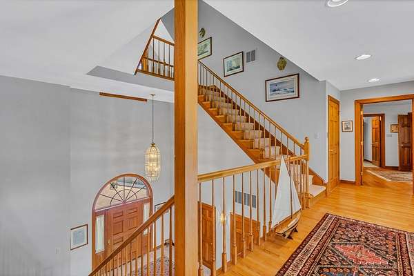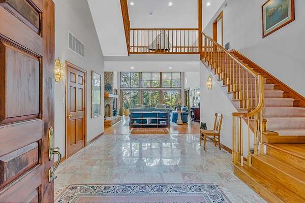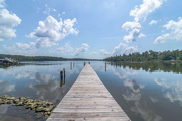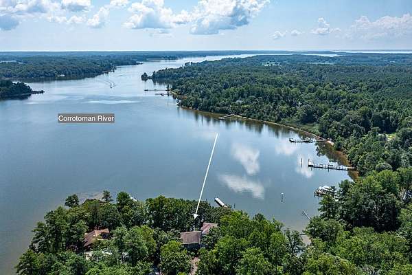 Spectacular wide & long views of the Corrotoman River await you at this custom-designed waterfront retreat with DEEP sailboat-depth water & a private pier. Located in Heritage Point, with access to a community Pool, Beach, & More, this expansive home was thoughtfully crafted for relaxed coastal living & elegant entertaining. The dramatic two-story Living Room showcases soaring ceilings, a grand fireplace, & stunning water views through walls of glass. The formal Dining Room is perfectly situated between the Living Room & Kitchen & includes a hidden wet bar,ideal for hosting. The spacious Kitchen offers generous storage, an informal dining area, & an adjacent Laundry Room for added convenience. A cozy waterside Family Room provides a perfect place to relax & enjoy river views. The main level includes two guest bedrooms, a full bath, & a walk-in closet. A private elevator services all levels of the home,from the basement to the attic,ensuring effortless accessibility. Upstairs, the spacious Primary Suite is a true retreat, featuring two full bathrooms, a fireplace-accented sitting room with built-ins, a large dressing room, & panoramic water views. A second ensuite guest bedroom with a large walk-in closet completes the upper level. The third floor offers a generous flex space, ideal for a home office, studio, or bunkroom. The walk-out basement features both interior & exterior access and includes a game room, an ensuite bedroom, additional office/flex space, & an enormous mechanical/storage room. Nearly every room opens to a waterside deck, maximizing outdoor living & Views!