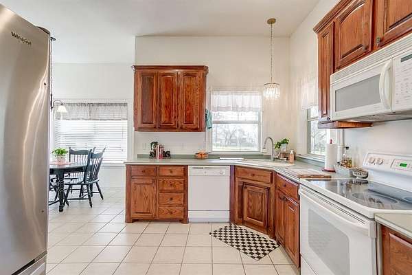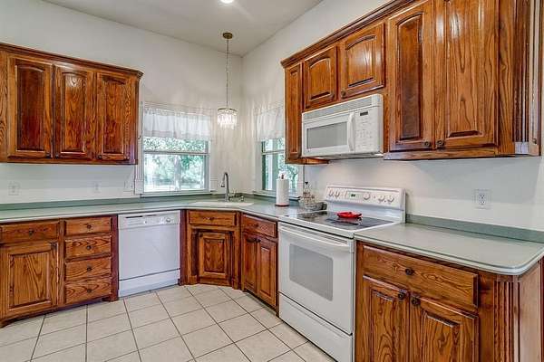 Welcome home to peaceful country living with neighborhood charm. Nestled on 1.73 acres in the desireable Heritage Oaks subdivision, this 3-2-2 custom home featuring a brick and stone exterior offers privacy, space and a thoughtful design. Inside, you'll find two comfortable living areas, a cozy fireplace and a spacious kitchen with large breakfast area ideal for everyday living and entertaining. The large primary bedroom includes a private ensuite bath with a garden tub, separate shower, dual sinks and double walk-in closets. Two nice sized secondary bedrooms and guest bath complete this beautiful home. Outside, you'll find mature oak trees, a large storage building with electricity, RV hook up, an in-ground tornado shelter, pipe fencing, nice landscaping, covered patio and an extended driveway for additional parking. Unlike most new construction homes, this property offers more land, landscaping, fencing, established trees and essential upgrades already in place, saving you time and money. Don't miss the opportunity to own this peaceful retreat with all the comforts of small town living with easy access to big city amenities. Close to schools and an easy commute to Fort Worth, Azle and Weatherford.