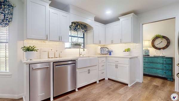 10 FENCED ACRES. UPDATED HOME. ROOM TO GROW. Welcome to your private slice of Texas in Liberty-Eylau! This 3 bed, 2 bath country retreat was fully updated in 2022Gfeaturing luxury vinyl plank flooring, plush new carpet, quartz countertops, stainless steel appliances, and a gorgeous walk-in tiled shower. The fireplace insert is powerful enough to heat the whole house, saving on bills and adding cozy vibes. A massive walk-in pantry keeps everything organized. Need extra space? The building out back is ready for your office, gym, or game room, so many options with this space. Relax on the stunning back porch with a wood-paneled ceiling, fan and plenty of space for entertaining. Bring your RVGthereGs a covered storage shed, plus a barn for all your gear and an additional storage shed for your lawn equipment. Bonus: a separate pad with its own septic, water, electric and road is prepped and ready for a second home or guest setup. There is a functioning well on this property also. This is the country lifestyle with all the extrasGdonGt miss it.