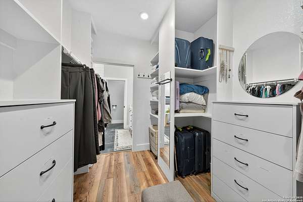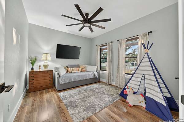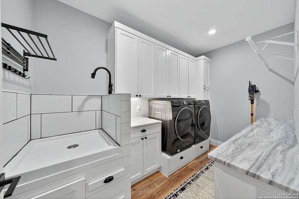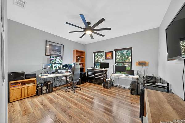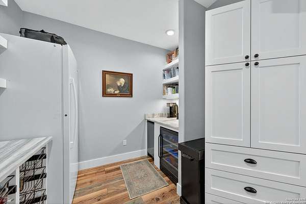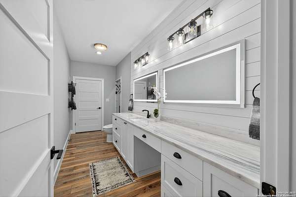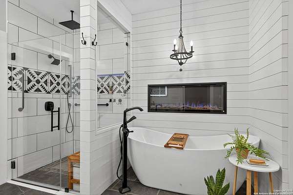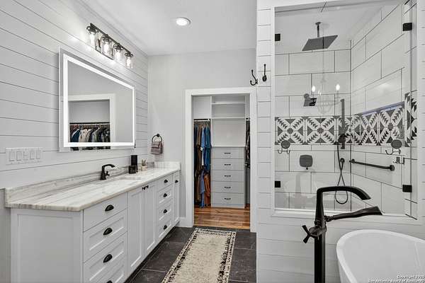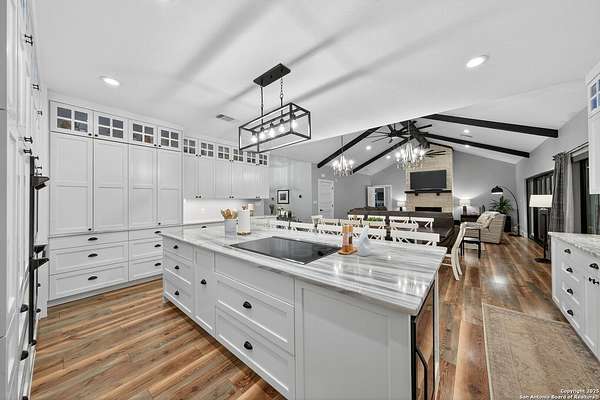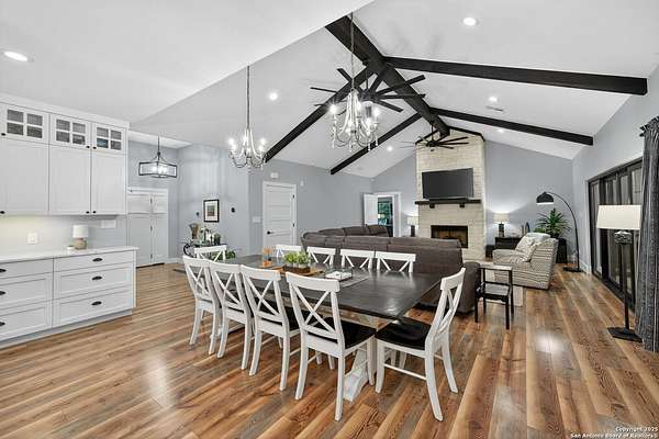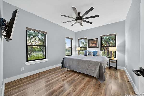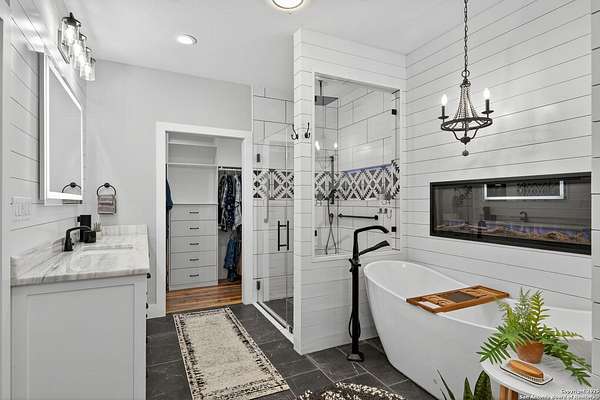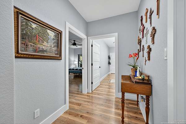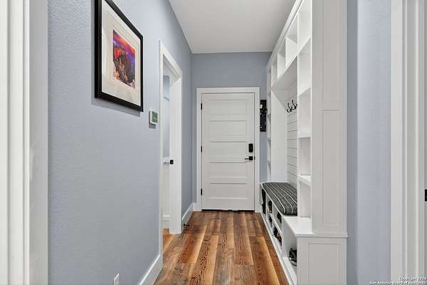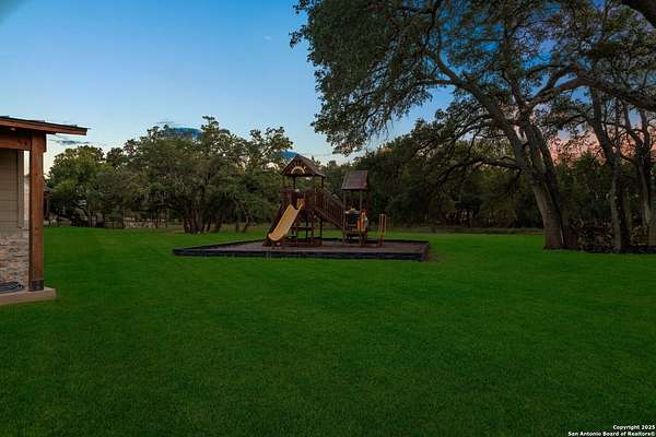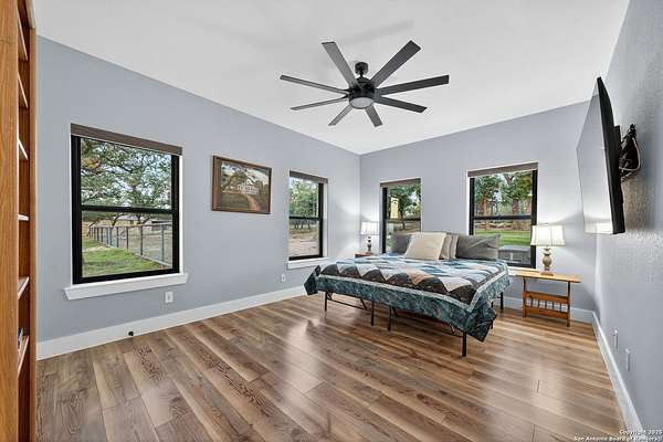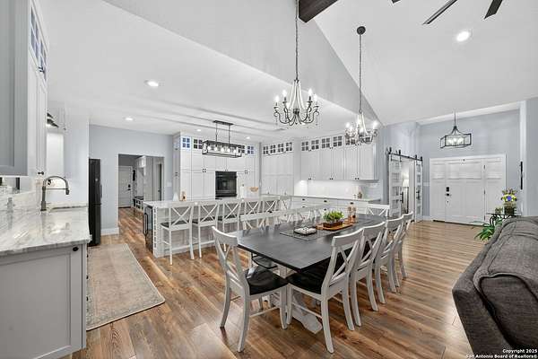 Welcome to 144 Lilly Lane, a masterfully executed custom estate in the exclusive gated community of Trinity Oaks Preserve. Completed in 2021, this residence embodies Hill Country elegance on over three private acres, secured by a 70-foot deed-protected greenbelt. The 3,526 sq ft single-story floor plan was brilliantly designed for modern living, featuring dual primary suites on opposite wings for ultimate privacy, five total bedrooms, a dedicated office with a fireplace, three full baths, and a convenient pool half-bath. Upon entry, the open-concept living area makes a grand statement with soaring vaulted ceilings, a dramatic floor-to-ceiling stone fireplace, and a wall of Pella Low-E windows that dissolve the boundary between indoors and the serene oak-studded landscape. The heart of this home is the chef's kitchen, a showcase of function and style. It features a magnificent ten-foot marble island, a premium induction dowdraft cooktop, and custom cabinetry locally milled to perfection. Behind this polished facade lies the home's secret weapon for entertaining: a truly hidden butler's pantry. This incredible space houses a wet bar, wine fridge, beverage cooler, deep freeze, and a stand-alone ice maker, allowing for effortless hosting while maintaining pristine main kitchen aesthetics. Additional custom details like a concealed coffee bar and a baker's hutch elevate the experience. The main primary suite forms a secluded owner's wing, a true sanctuary of restorative luxury. It features a tray ceiling and a programmable electric fireplace, while oversized windows offer tranquil views. Its spa-inspired bath is a work of art, with a freestanding double slipper tub positioned beneath a chandelier and a third fireplace. The oversized, LED-lit walk-in shower, dual vanities with a dedicated makeup station, a heated towel warmer, and two large custom closets complete this opulent retreat. This home is an engineering marvel, built to uncompromising standards. The entire structure is encased in a full spray foam envelope (R30+), ensuring remarkable energy savings. Peace of mind is guaranteed by a whole-house generator capable of running the entire property for extended durations. The infrastructure includes dual HVAC units (one with dual zones), two on-demand tankless propane water heaters, and a 30,000-gallon rainwater collection system. A proactive, custom-engineered drainage system with French drains and sump pumps ensures the grounds remain impeccable. The outdoor spaces are a private resort curated for an idyllic Hill Country lifestyle. A majestic oak tree forms a natural, welcoming archway on the path to the stunning custom in-ground pool, which features a vanishing infinity edge and a heated spa. Entertain on a grand scale across multiple covered patios, including a nearly 50-foot rear patio with a wood-burning stove and a 20x20 pool pavilion with a full outdoor kitchen. The property is secured by high-end, welded drill stem pipe ranch fencing, offering open views for spectacular sunsets and brilliant, star-filled night skies. Enjoy serene country living just minutes from Baylor Scott & White hospital, the future Flat Rock Creek retail center, Marble Falls, and Lake LBJ. With Austin's Bee Cave Galleria only 35 minutes away, this property is not just a home, but a legacy Hill Country retreat. With too many features to list, ask your Realtor for our property inclusions addendum.