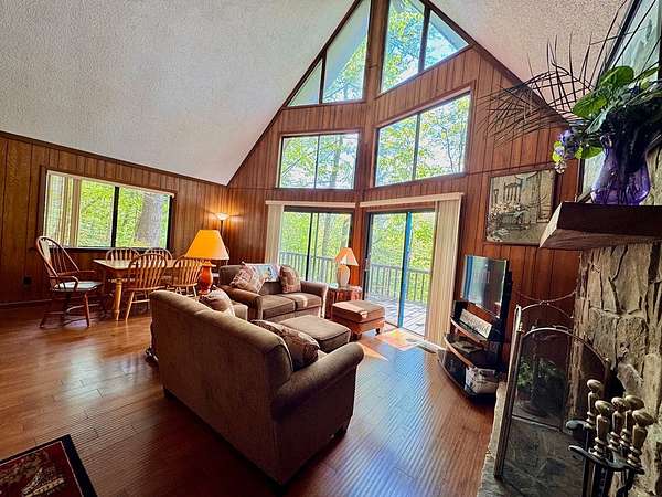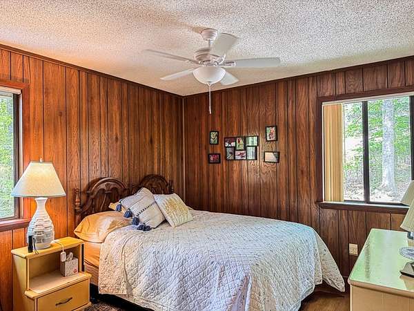 - Cathedral Ceiling(s), Ceiling Fan(s), Furnished, Wood