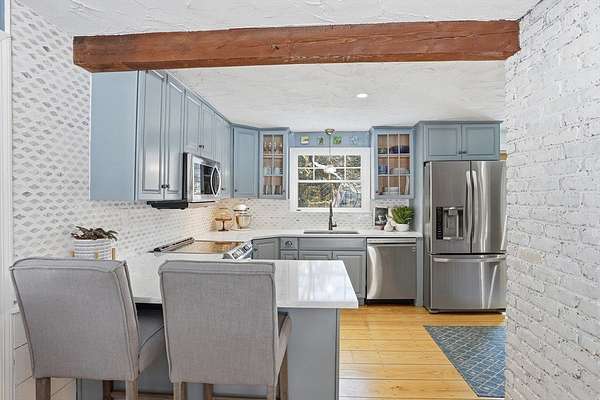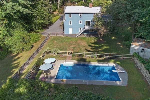 Tucked behind a charming stone wall on one of Bolton's prettiest country roads, this classic Cape brimming w/ updates welcomes you w/ warmth, character & a storybook setting. The stylishly redesigned kitchen w/ stainless appliances, quartz counters, chic tile backsplash & breakfast bar flows seamlessly into the family room where a cozy fireplace invites you to relax & connect. Entertain w/ ease in the oversized living & dining room. Enjoy the convenience & versatility of a 1st floor bedroom, laundry & stunning bath w/ walk-in shower - all on the main level! Upstairs, 3 generous bedrooms & a beautifully updated bath provide space for all. Gather in the spacious screened porch & host unforgettable summer days on the deck overlooking the expansive private fenced yard w/ inviting in-ground pool. Thoughtful updates & energy-efficient geothermal heating & AC keep comfort high & energy costs low. Located near schools, town center, conservation trails & just 2 mi to I-495. Home starts here.