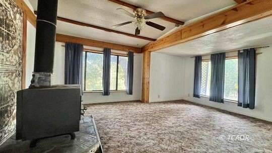 - Laminate/Formica Laminate, Countertops Carpet, Flooring Accessibility Features, Ceiling Fan(s), Wood Stove, Flooring