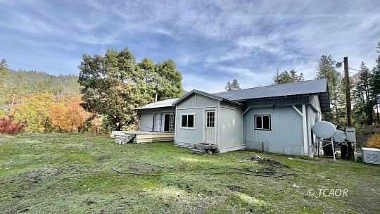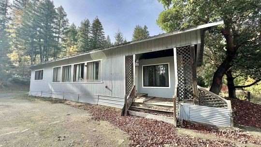 Tucked away just minutes from town, this 2 bedroom, 1 bathroom home with a bonus room offers approximately 1,568 square feet of comfortable living space on 8.58 acres. The home features a mix of updates including laminate flooring, carpet in some rooms, and a walk-in tub for added convenience. A wood stove and monitor heater help keep the home cozy through the seasons. Outside, a durable metal roof provides peace of mind while a small deck overlooks the large, flat backyard; perfect for relaxing, gardening, or enjoying the peaceful surroundings. The property includes a storage building and two metal storage containers for additional space and utility. With private well (30 gpm's per well completion report), septic, and power already in place, the essentials are ready to go. The acreage stretches to Salt Creek, adding to the property's charm and natural setting, all while being just about five minutes from downtown Hayfork. Owner may consider financing!