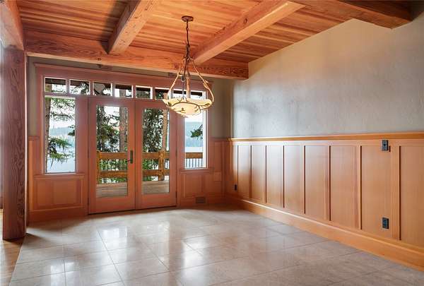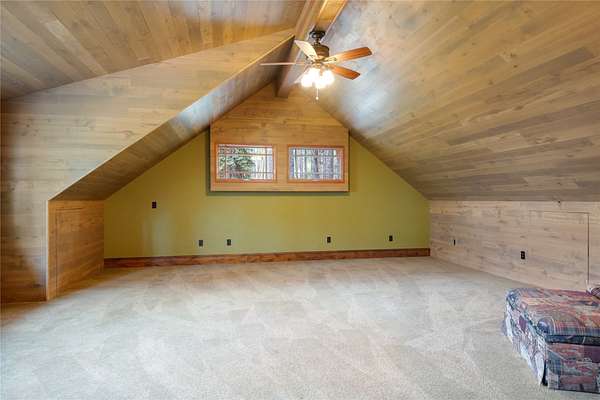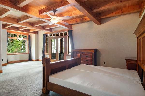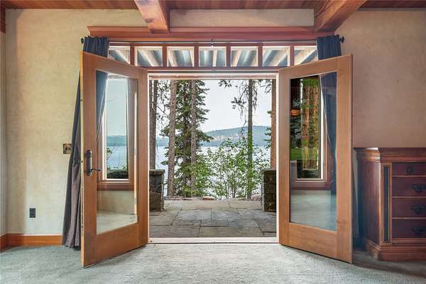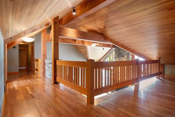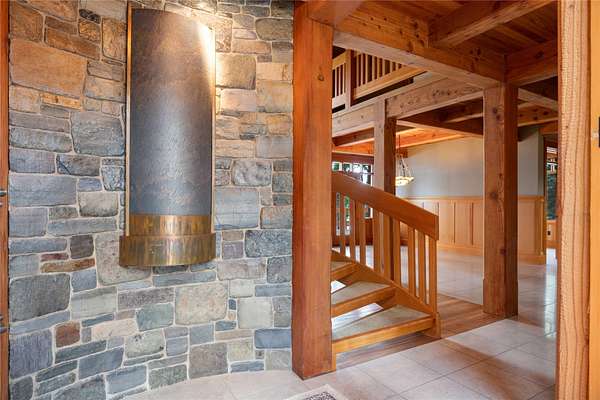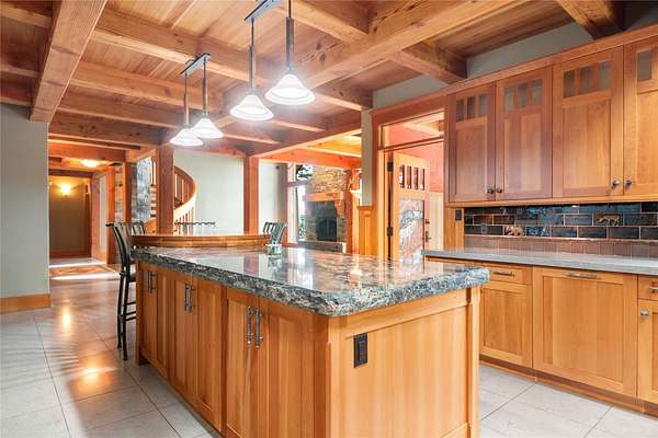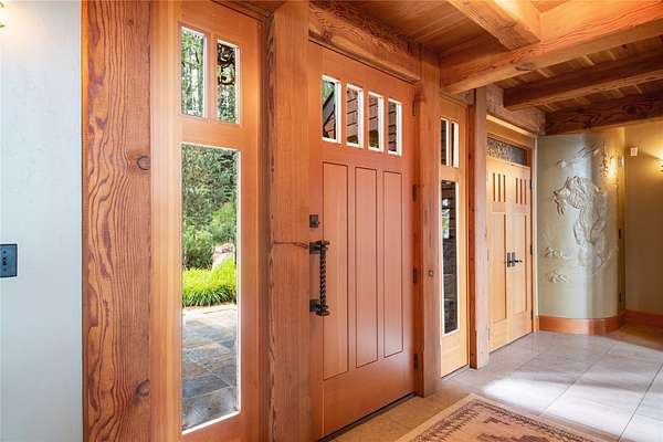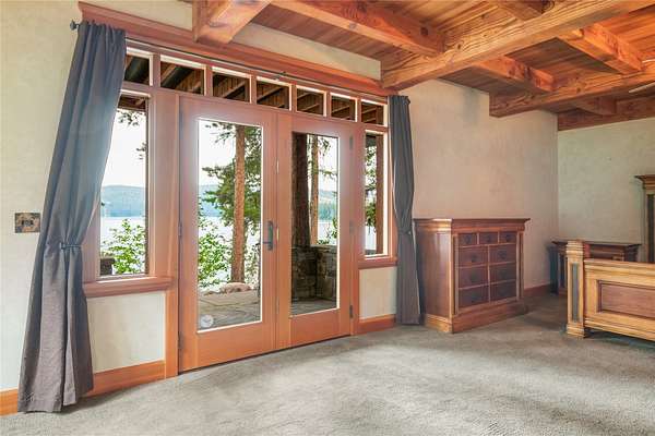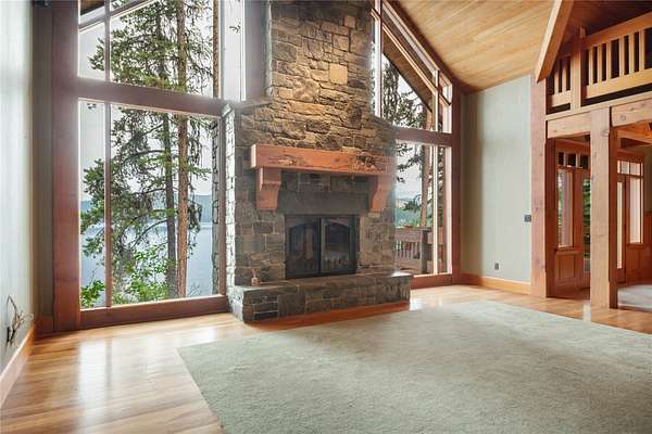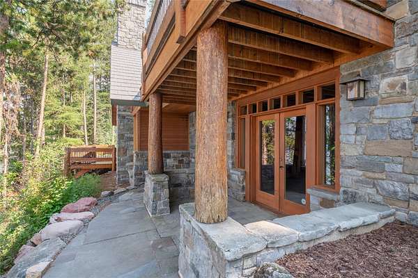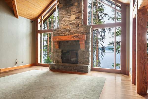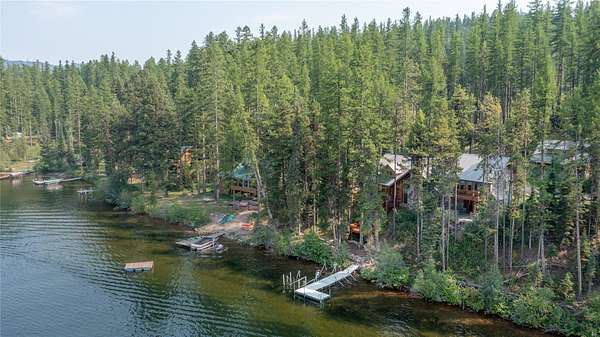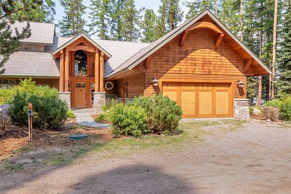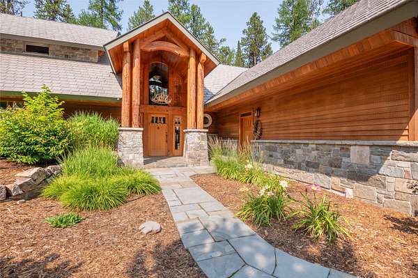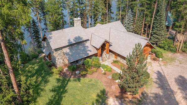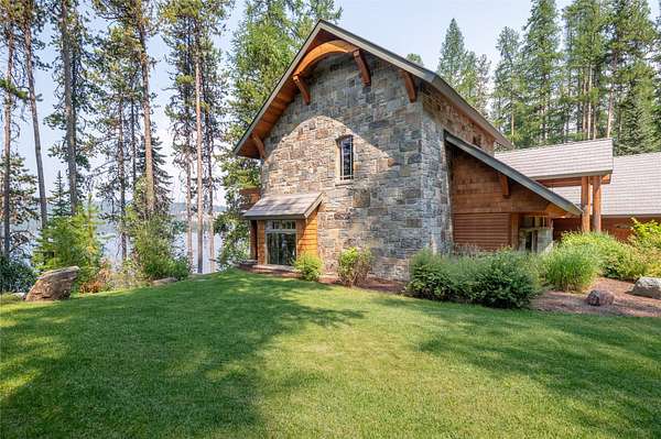 Welcome to this rare 1.75 acre, 4350 sq ft. waterfront property, situated on the south shore of Placid Lake. The beauty and craftsmanship are obvious, but the durable and engineered construction, choice materials, energy efficiency and attention to every detail is what sets this property apart from most anything on the lake. This exquisite 4-bedroom, 3-bathroom home offers a perfect blend of luxury, artistry, and functionality. The main level features a primary suite with a private lake-view deck and a marble-adorned bathroom, open kitchen, half bathroom, dining area, living room, and sunroom. The upper level includes 3 bedrooms, a full bathroom, a large office, and an expansive rec room. Artistic touches throughout include custom plaster art reliefs, handmade copper door panels, and hand-carved wood panels. The property also has a detached shop with finished living area above. The dock shown in the pictures has been removed and a new 25x6 floating dock will be installed in early June. ~ EXTERIOR STRUCTURE, DURABILITY & UNIQUE MONTANA BEAUTY ~ The foundation is engineered and reinforced to incorporate the elevated structural support, durability, and natural beauty of locally sourced, full block, Montana Chief Cliff Stone, which covers and protects approximately 70% of the home. When used in full block applications, Montana Chief Cliff Stone offers unparalleled structural integrity and thermal mass, enhancing your home's energy efficiency while providing a robust, enduring exterior that withstands the harshest weather conditions. This property boasts exquisite Clear Vertical Grain (CVG) Cedar siding, a premium feature that combines timeless beauty with exceptional durability that is naturally resistant to decay, insects, and weather. This siding promises long-lasting protection and minimal maintenance. The roof is a premium composite DaVinci Slate installed in 2020, offering unparalleled protection and timeless elegance. This roof is built to last, with a lifetime limited materials warranty, boasting a Class-A fire rating and the highest Class- 4 impact rating. Designed to withstand winds up to 110 mph, it has passed rigorous tests, including Miami-Dade County and High-Velocity Hurricane Zone standards. ~ INTERIOR BEAUTY, STRUCTURE & ENERGY EFFICIENCY ~ Discover the enduring beauty and strength of completely custom post-and-beam construction, a time-honored method forming the backbone of traditional timber framing. This robust and visually striking structure features large, horizontal beams supported by vertical posts, all elevated by the use of mortise-and-tenon joints- a classic wood joinery technique known for its exceptional strength and durability. What sets this approach apart is the careful selection of wood "free of center heart," ensuring the most stable, crack-resistant portions of the wood are used. By avoiding the tree's center heart or pith, these beams are less prone to warping or splitting, enhancing both the structural integrity and longevity of your home. This meticulous process also ensures a more uniform and visually appealing grain, adding to the overall aesthetic charm of exposed timber elements. Additionally, this home is equipped with a whole-home air exchange system, ensuring a continuous flow of fresh air while maintaining optimal indoor air quality. Paired with spray foam urethane insulation, this system not only provides superior energy efficiency and noise reduction but also actively removes stale air, pollutants, and excess moisture, creating a healthier and more comfortable living environment. This combination of post-and-beam construction, meticulously selected wood, advanced air exchange, and cutting-edge insulation technology results in a home that is as durable as it is inviting, ideal for those who value both tradition and modern innovation in their living space. ~ CUSTOM INTERIOR CRAFTSMANSHIP & ELEGANCE ~ This property is a true masterpiece, showcasing the beauty and strength of vertical gra