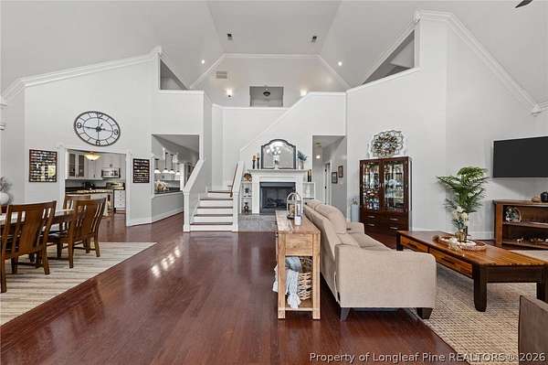 Stop searching-your dream home is here! This stunning lakefront retreat is nestled on a private 2-acre lot in a gated, quiet cul-de-sac with NO HOA. Designed for both everyday comfort and unforgettable entertaining, this home offers breathtaking lake views, an inground pool, and a detached 2-car garage with an apartment above. Step inside to a beautiful great room featuring vaulted ceilings, a gas log fireplace, and access to an oversized covered back deck overlooking the backyard and lake. A spacious formal dining room sits just off the great room, perfect for hosting gatherings. The chef's kitchen boasts gorgeous cabinetry, granite countertops, all appliances, a breakfast bar, and picture-perfect views from the sink window. The oversized first-floor primary suite is a true retreat with a large walk-in closet and a spa-like glamour bath featuring a jetted tub, separate shower, custom tile inlay, and direct access to the covered back deck. Also on the main level are an office with a closet (ideal as a bedroom), a laundry room, and convenient everyday living spaces. Upstairs you'll find two large loft areas, two additional bedrooms, and a full bath. The finished, heated and cooled walk-out basement beneath the deck offers flexible space-currently used as a gym-plus additional storage. Outside storage building on concrete is next to the detached garage. The detached deep 2-car garage includes a studio-style apartment with a bedroom area, cabinetry with sink, and a full bath with shower-perfect for guests. Crawlspace has been encapsulated. Outside, enjoy summers by the inground pool with safety fence, expansive backyard & lake views. You can truly own your own compound that is completely fenced in with an automatic gate at the entrance. The Lake is stocked and fishing is certainly allowed! Private, peaceful, and packed with features-this one truly must be seen to be believed!
