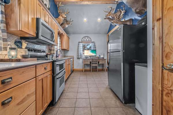 - Ceiling Fan(s), Garage Door Opener, LP Tank Owned